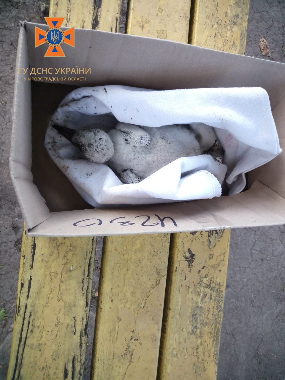 Рятувальники Кiровоградщини повернули до гнiзда лелеченя, що випало.