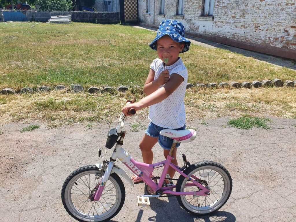 Волонтери центру вже передали велосипед 5-ти рiчнiй Арiнi Малєєвiй, яка є вимушеною переселенкою з Харкiвщини. Сiм’я Арiни була змушена залишити домiвку через активнi бойовi дiї.