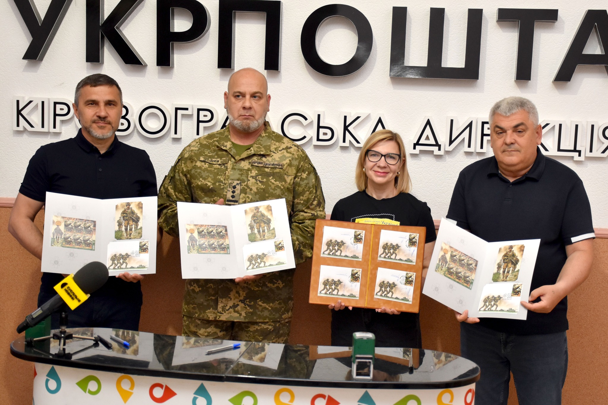 У процедурі спеціального погашення марки «Сіль землі. До дня піхоти» взяли участь перший заступник голови Кіровоградської обласної ради Юрій Семенюк, заступник начальника обласної військової адміністрації, Сергій Поліщук, начальник обласного ТКЦ та СП, полковник Владислав Зуєв та директорка Кропивницького регіону АТ «Укрпошта» Тетяна Капустіна.