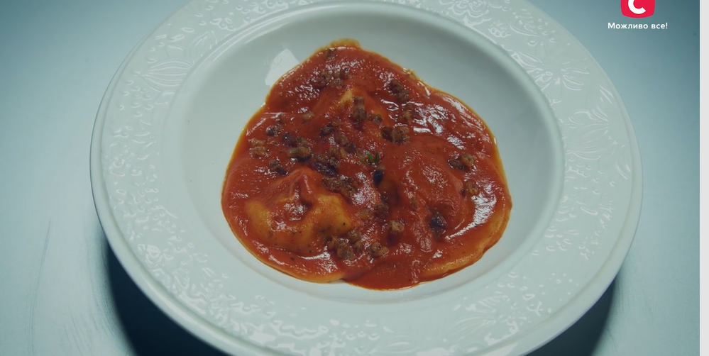 “Ваш соус загустий, равіолі гарної форми, але вони розлазяться коли розрізаю. Видно що це тушонка, треба було зробити фарш і смак тушонки теж залишився. Ці смаки повертають нас в консервну банку. З хорошого тільки тісто, але з консервою недопрацьовано. Візуально непогано а по смакам недопрацьовано”.