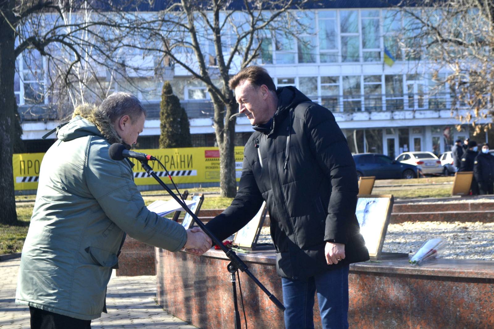Бiля пам’ятника “Воїнам – iнтернацiоналiстам всiх поколiнь Кiровоградщини” зiбралися керiвники областi та мiста, представники громадських органiзацiй, у тому числi обласної органiзацiї ветеранiв України, представники рiзних установ та вiдомств мiста.