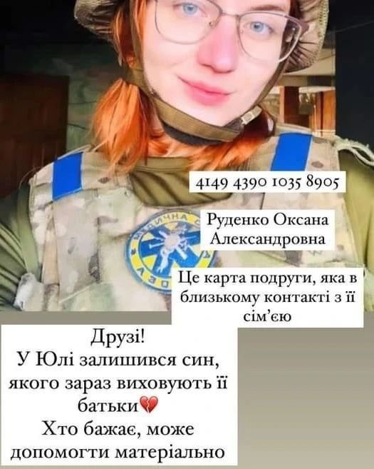 “Юлю ми знали ще до Азову i до вiйни, вона нiколи не здавалась та йшла тiльки вперед! Її покликанням було лiкувати i у складнi часи вона не вiдступила. Вона була прекрасною, талановитою людиною, вiрним другом, класною старостою, люблячою матiр’ю, професiйним фельдшером та надiйною сестрою для побратимiв з полку”.