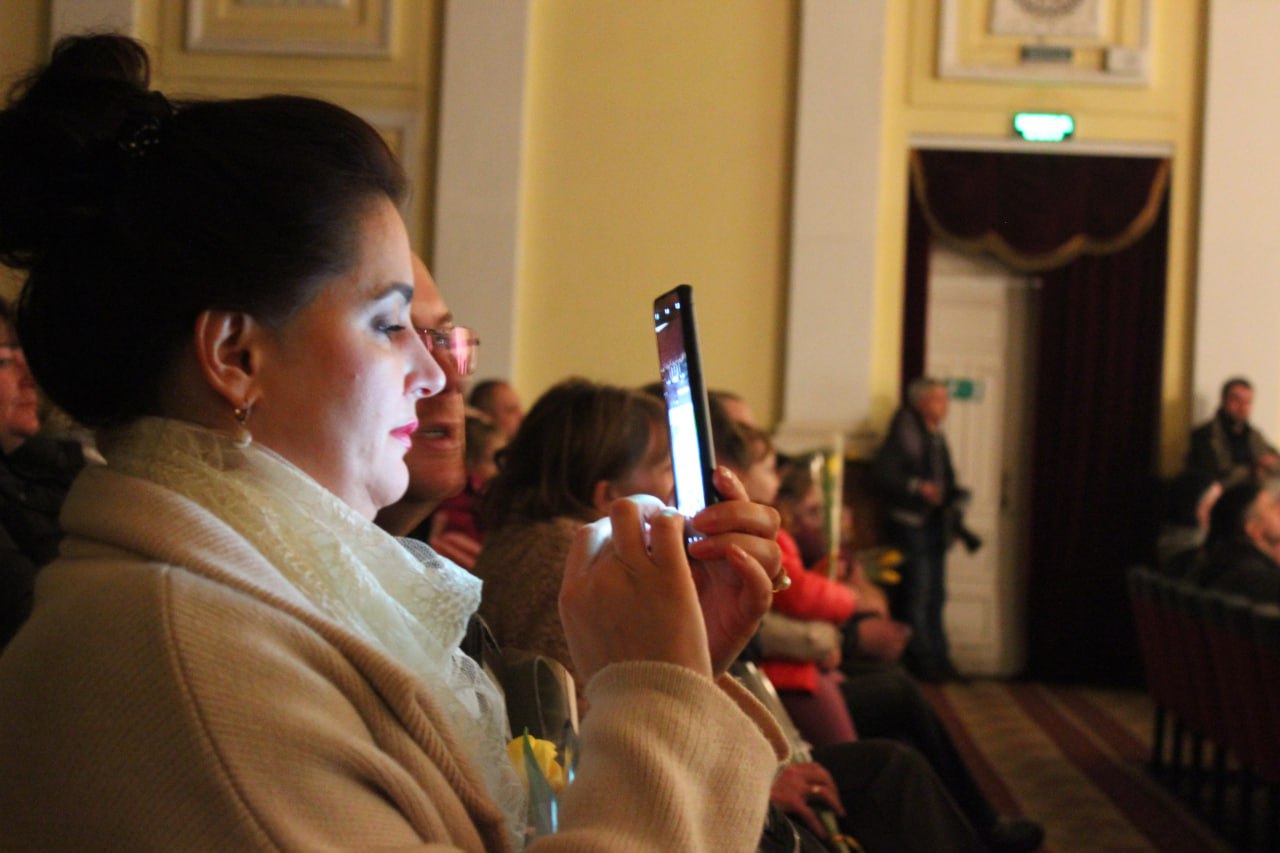 Однак концертними виступами захід не обмежився бо присутні в залі батьки і аматори сцени привітали оберемками весняних квітів із днем народження директорку обласної дитячої філармонії Наталію Сафронову. Разом із колегами по сцені вона нагадала, що саме високе мистецтво допомагає нам усім триматися разом і не втрачати надію на кращі часи.