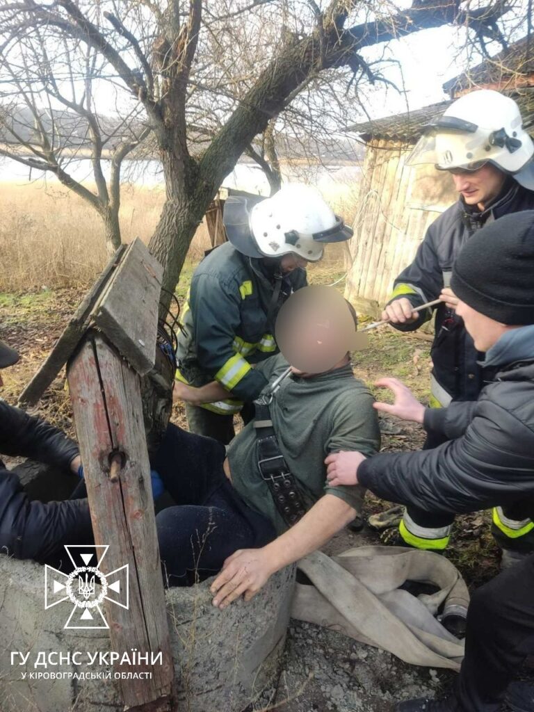 Бiйцi олександрiйського пiдроздiлу, що прибули до мiсця виклику, за допомогою рятувальної мотузки та власних сил допомогли чоловiковi вибратися на поверхню.