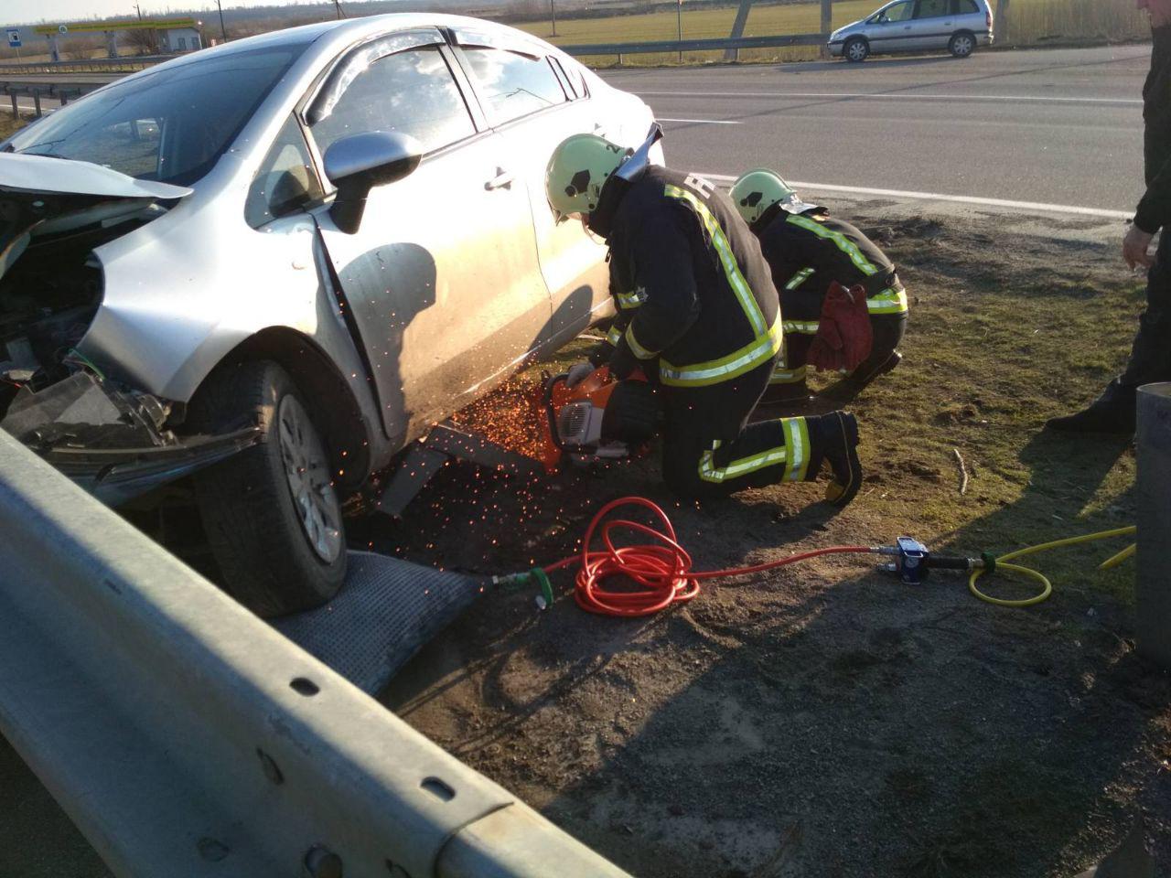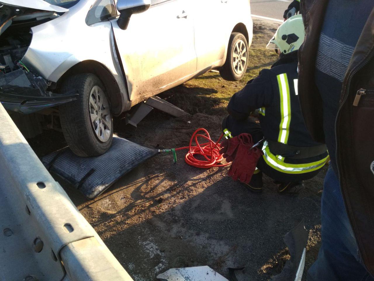 Рятувальники, що прибули на мiсце подiї, надали допомогу по демонтажу металевих конструкцiй роздiльної смуги автодороги за допомогою бензорiза.