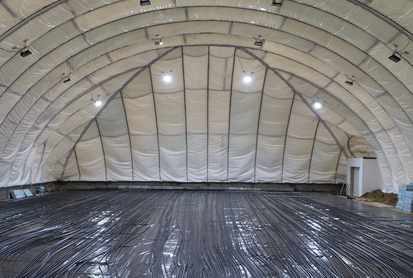 В Олександрiї тривають роботи по обладнанню льодової арени. Наразi робiтники вже змонтували та уклали на полi 20 км труб, по яких циркулюватиме етиленглiколь – рiдина, що не замерзає при низьких температурах, засипали весь майданчик пiском i встановили бортики.