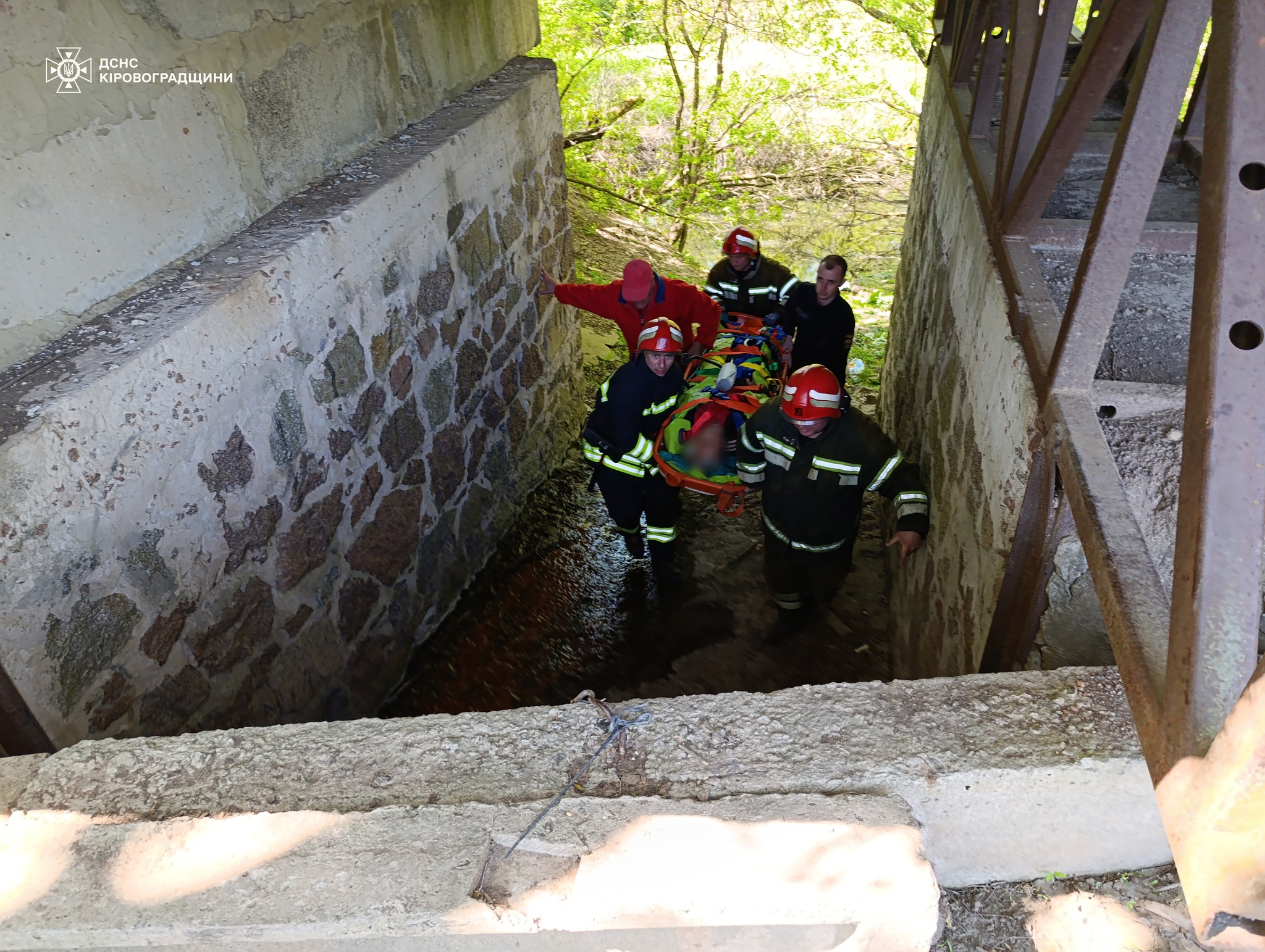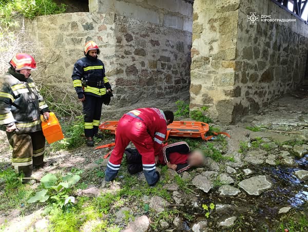 Сьогоднi, 28 квiтня, о 10:23 до Служби порятунку надiйшло повiдомлення про те, що у с. Iванiвка Рiвнянської громади Новоукраїнського району чоловiк зiрвався з мосту на скелястий берег мiсцевого ставу.