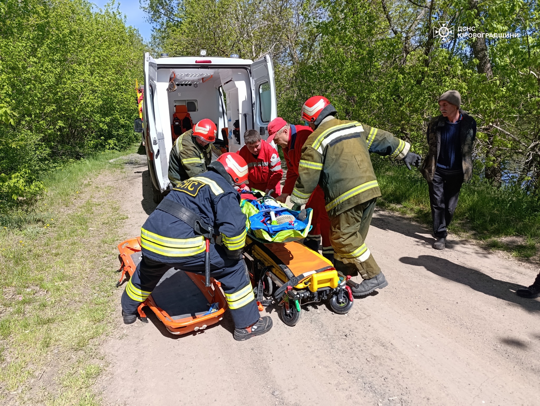 В результатi падiння вiн отримав травми та потребував допомоги. Рятувальники новоукраїнського пiдроздiлу ДСНС, що прибули до мiсця подiї, за допомогою медичних нош транспортували постраждалого до карети швидкої медичної допомоги.