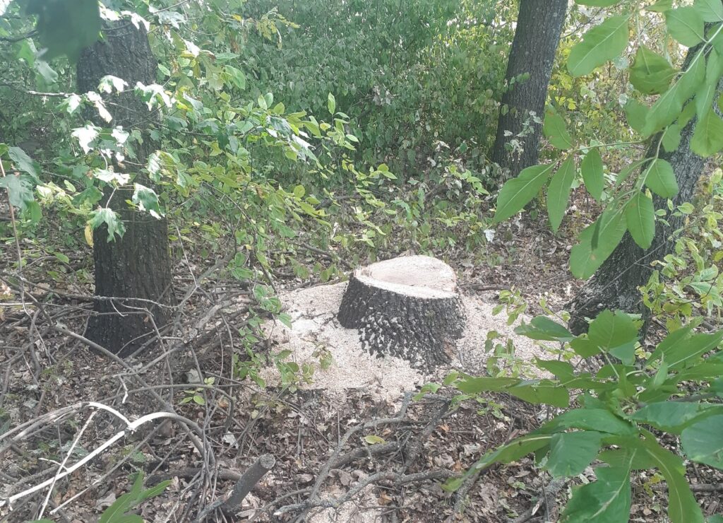 Під час огляду, інспектори виявили свіжоспиляні частини дерев, пні сироростучих дерев різного діаметру, пошкоджені дерева до ступеня припинення росту.
