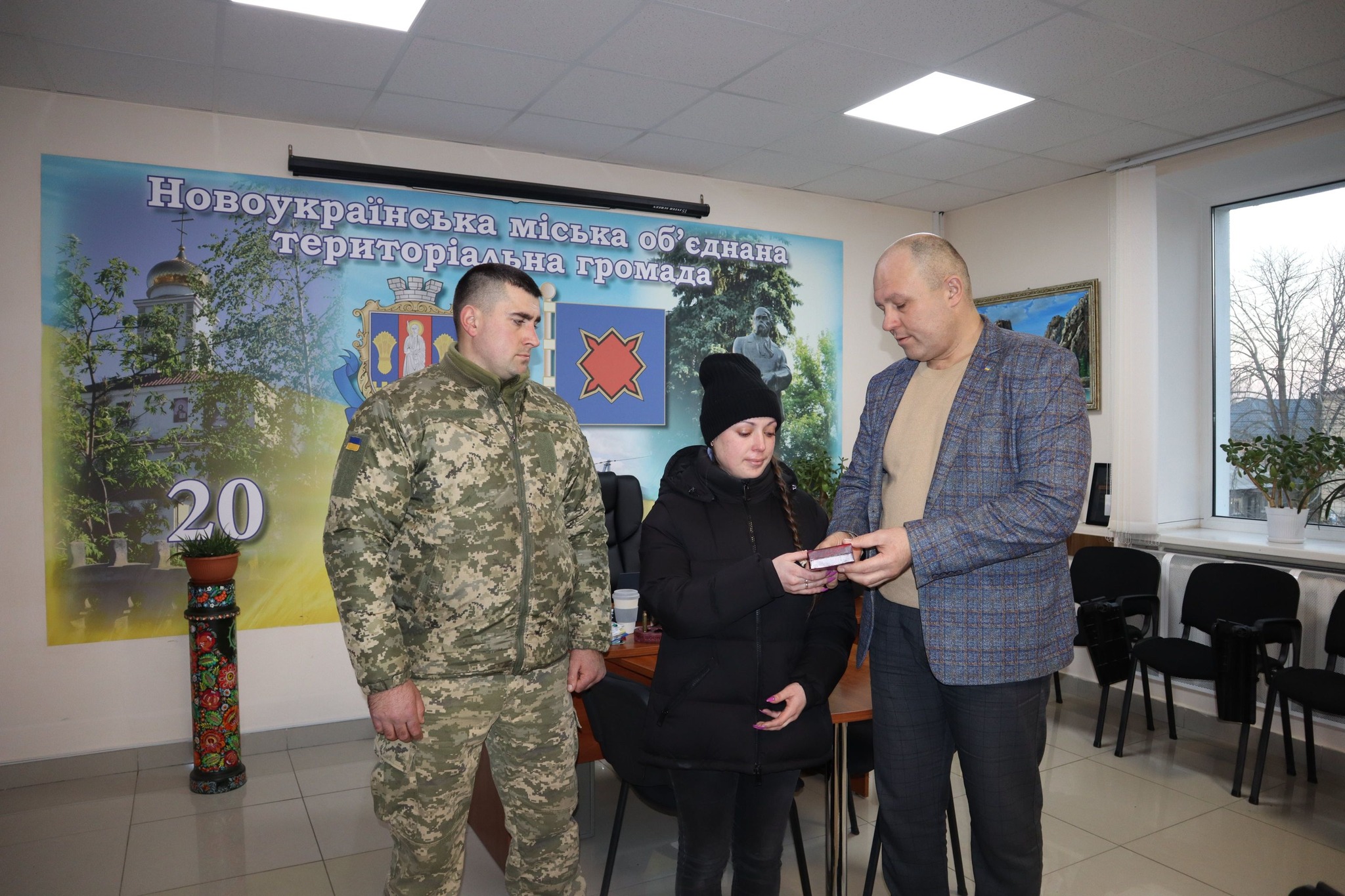 Нагороду вручили Новоукраїнський міський голова Олександр Корінний та тимчасово виконуючий обов’язки начальника групи психологічної підтримки персоналу Новоукраїнського РТЦК та СП капітан ЗСУ Ярослав Захарченко.