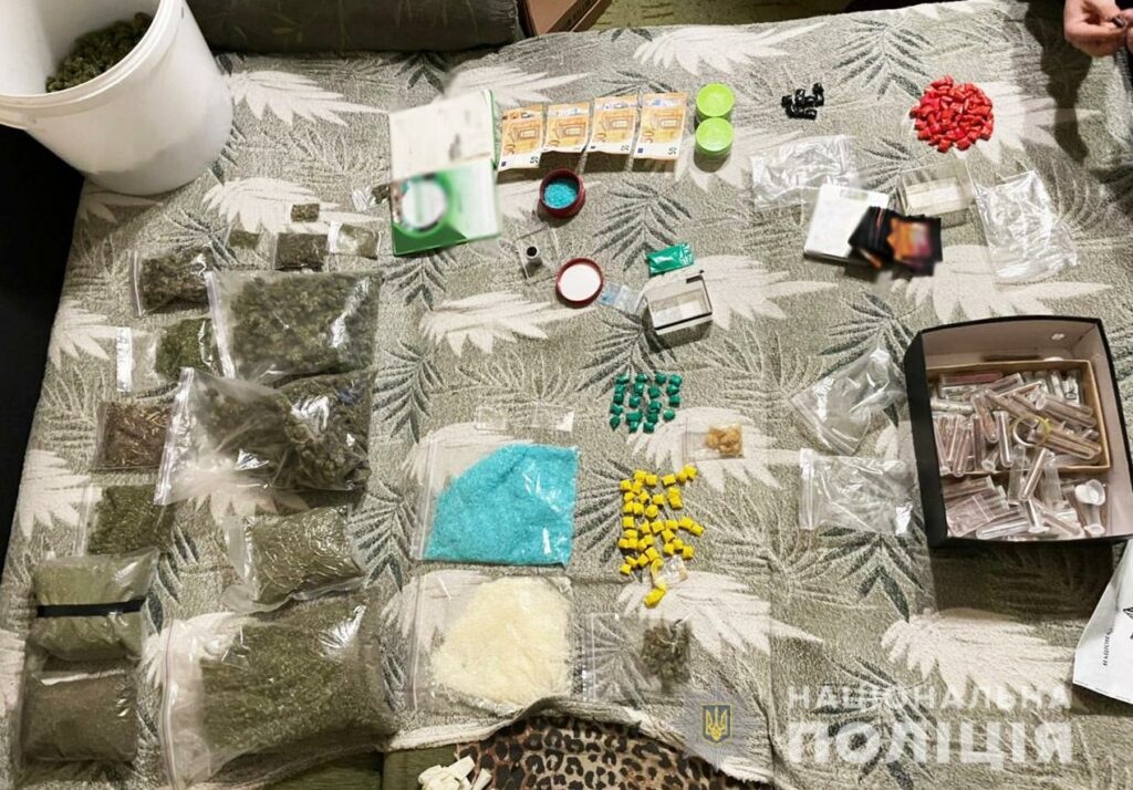 Під час санкціонованих обшуків поліцейськими було виявлено десятки дозованих та готових до реалізації пакунків із наркотичними та психотропними засобами.