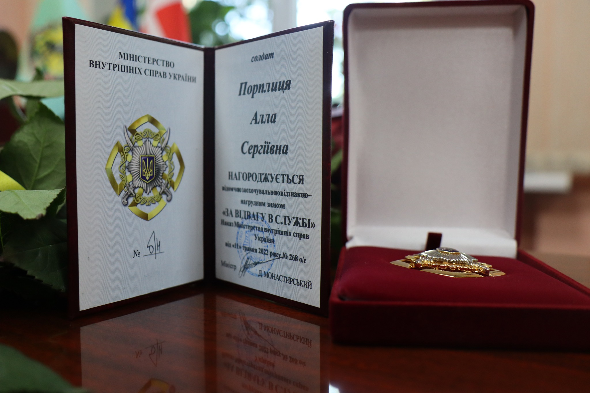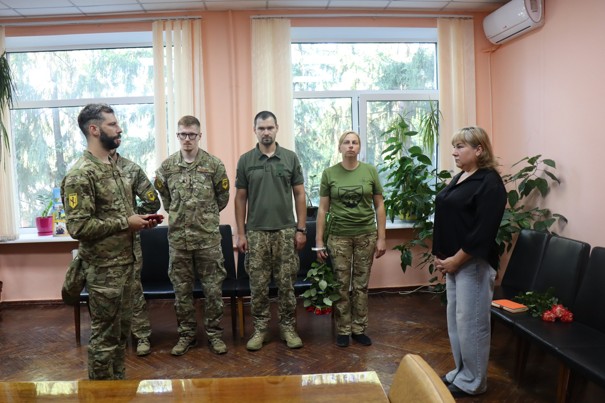 Мамi захисницi з Онуфрiївщини, солдата 2-го вiддiлення 2-го командирського взводу командирської роти окремого загону спецпризначення “Азов” – Аллi Порплицi вручили вiдзнаку.