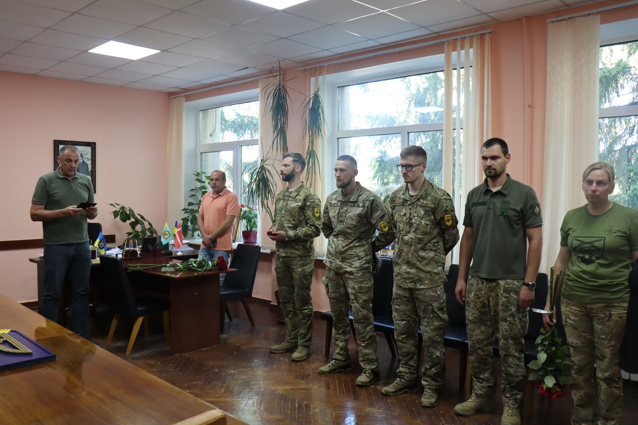 Вiдомчу заохочувальну вiдзнаку МВС України- нагрудний знак “За вiдвагу в Службi” надали разом з вiйськовослужбовцями бригади “Азов”, 4 липня.