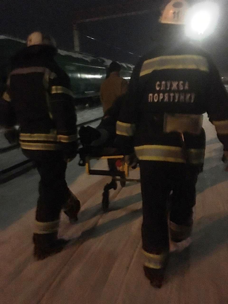 Рятувальники 2-го Державного пожежно-рятувального загону м. Олександрiя винесли громадянина з вагона до автомобiля швидкої допомоги. Хворого госпiталiзували до Центральної мiської лiкарнi.