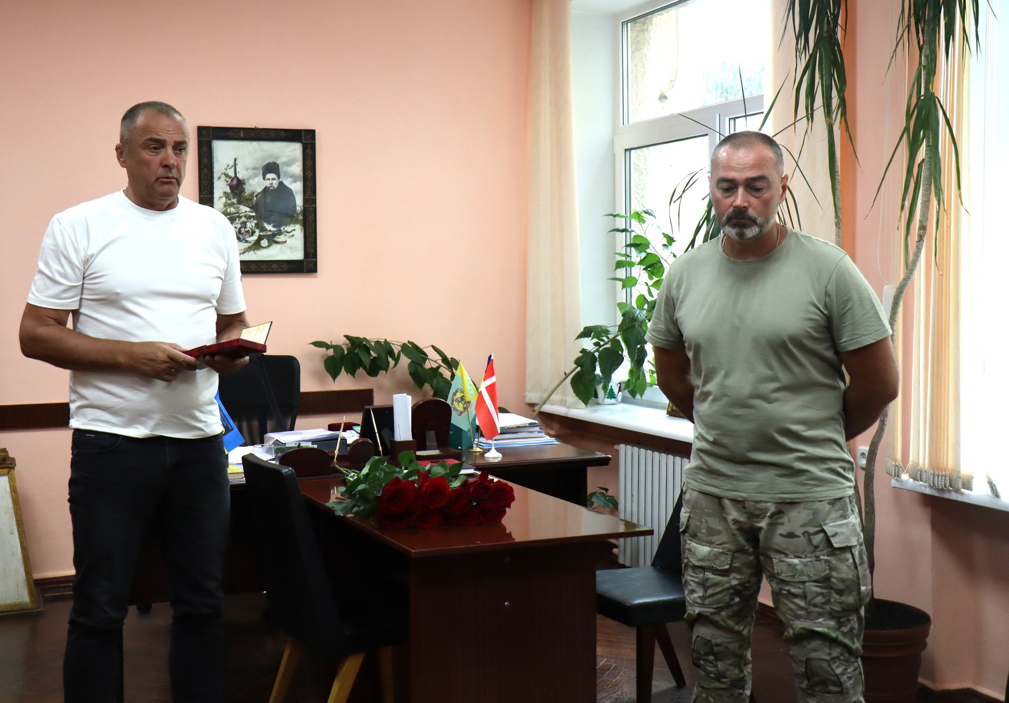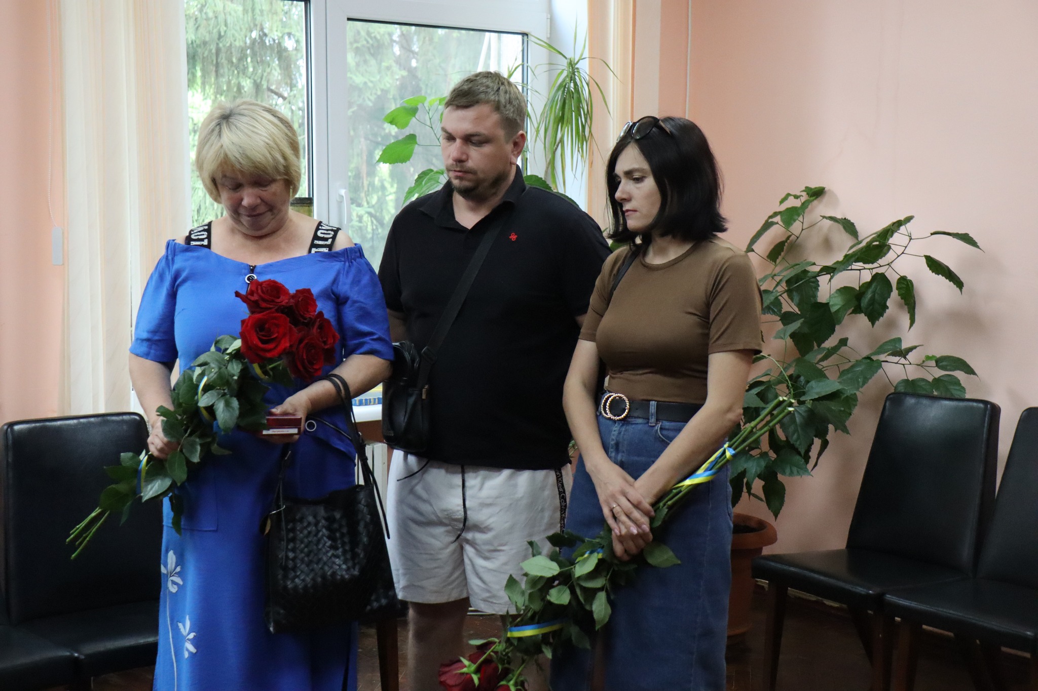 Разом із начальником відділення обліку мобілізаційної роботи – заступником начальника другого відділу Олександрійського РТЦК та СП, майором Миколою Вітриком, голова громади мав честь вручити почесну нагороду рідним Героя.