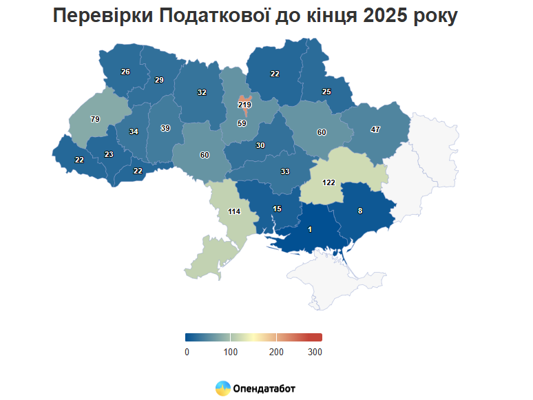 Найменше пощастить тим, хто працює в Києві — кожна п’ята перевірка запланована саме тут (219). За столицею наслідують Дніпропетровська (122), Одеська (114), Львівська (79) та Полтавська (60) області.