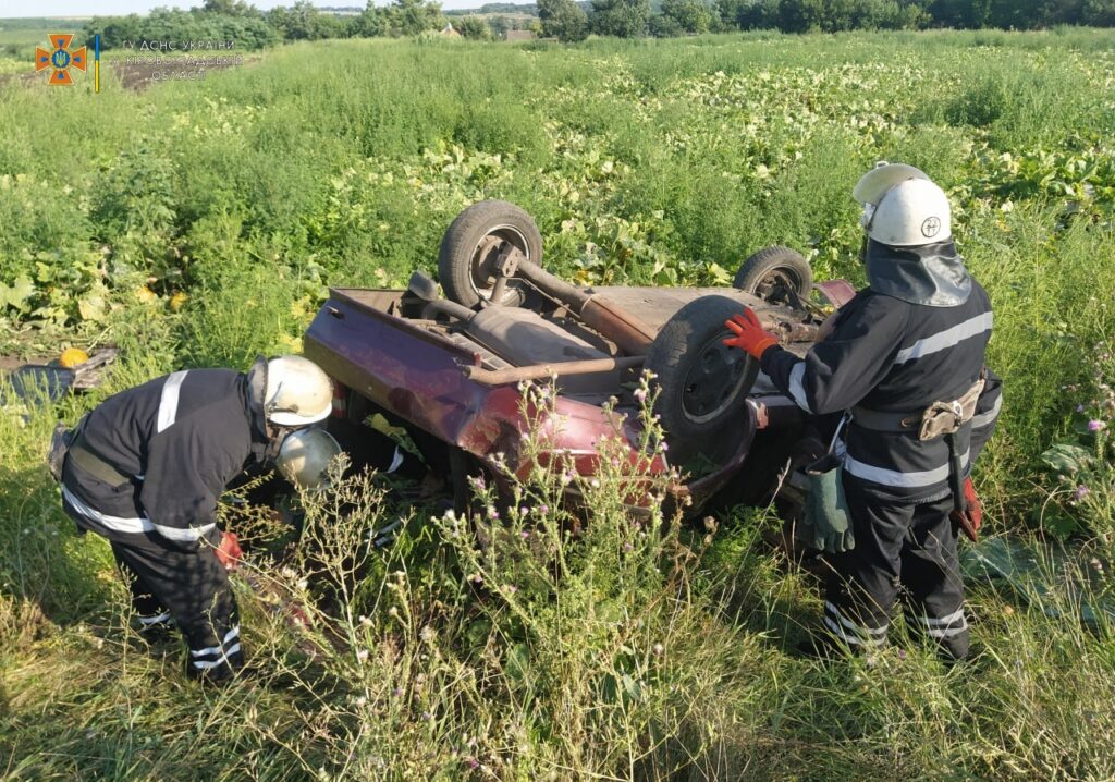 Водій автомобіля “Славута” перевищив швидкість, не впорався з керуванням та допустив з’їзд у кювет з подальшим перекиданням автомобіля.