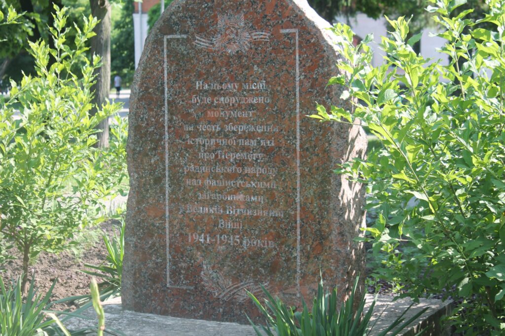 Мова йде про кам’яний знак, на місці якого в майбутньому мали встановити “монумент про Перемогу радянського народу над фашистськими загарбниками у Великій Вітчизняній війні”. Відповідне рішення ухвалив виконавчий комітет міської ради.