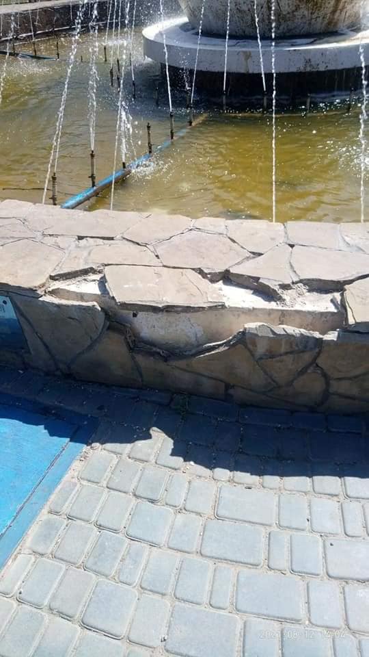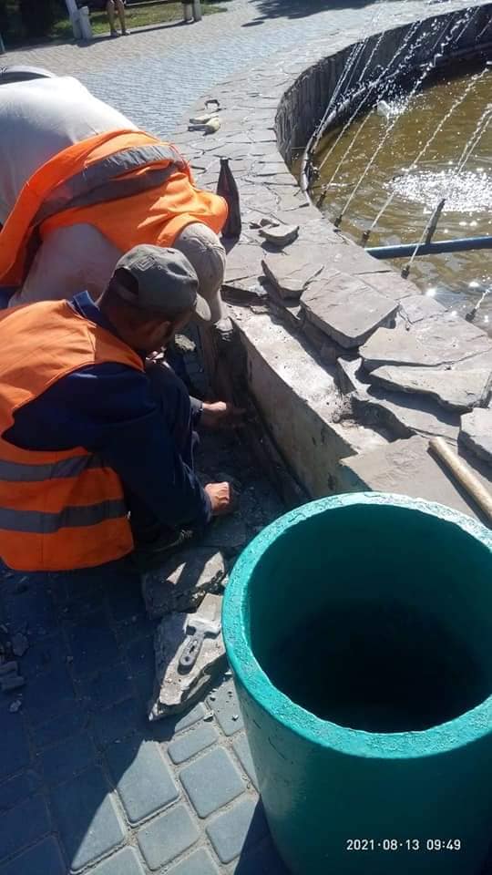 Тут встановлюють новi урни для смiття, а також ремонтують чашу мiського фонтану.
