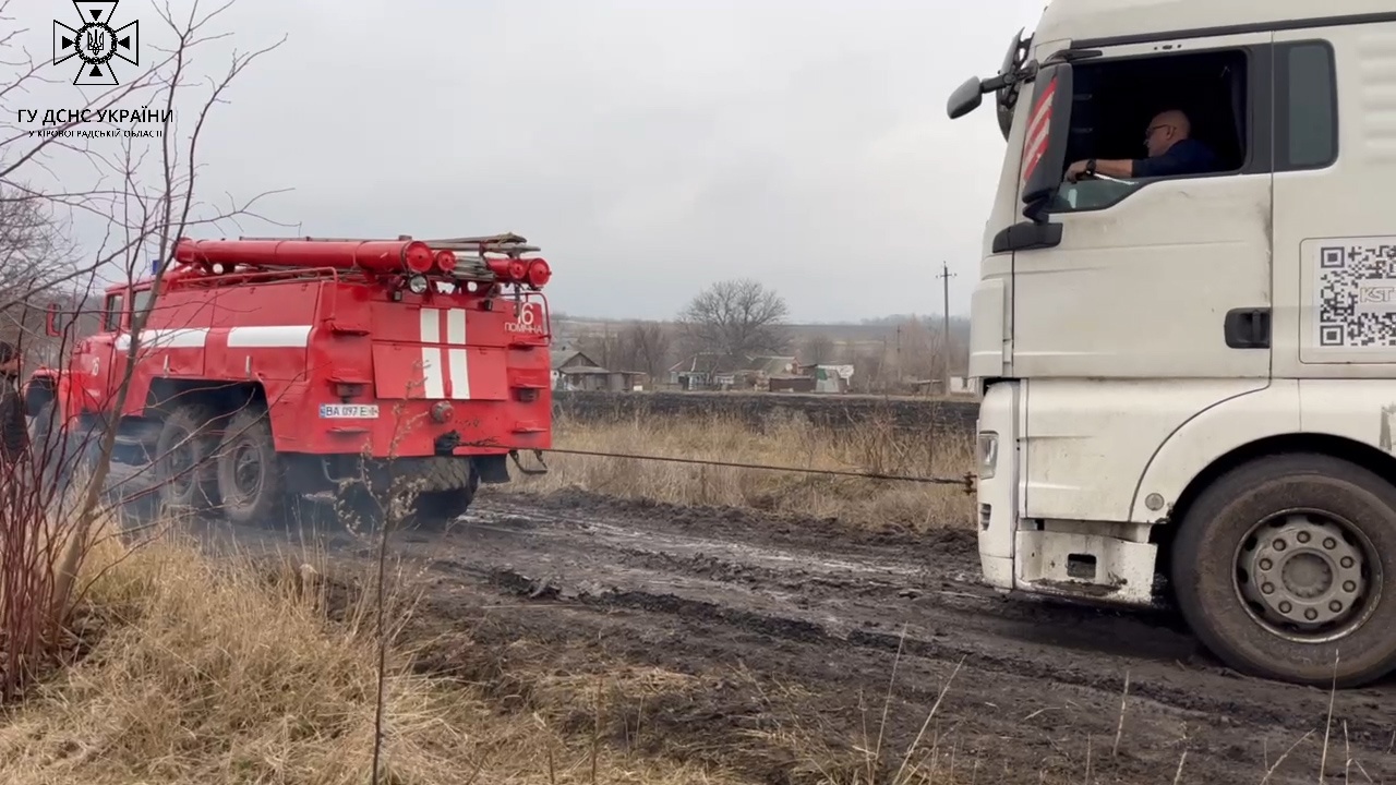У Новоукраїнському районі на автомобільній дорозі між м. Помічна та с. Веснянка надано допомогу по буксируванню двох вантажівок зі складної ділянки дороги.