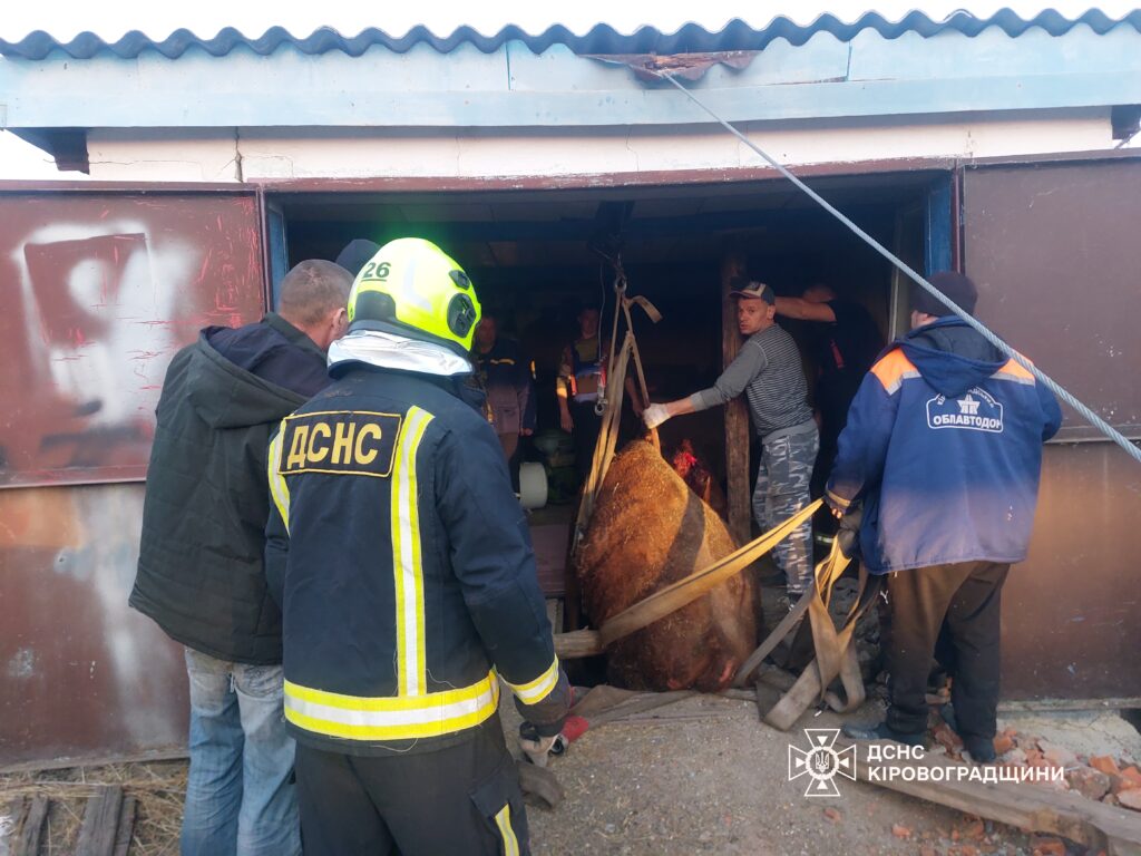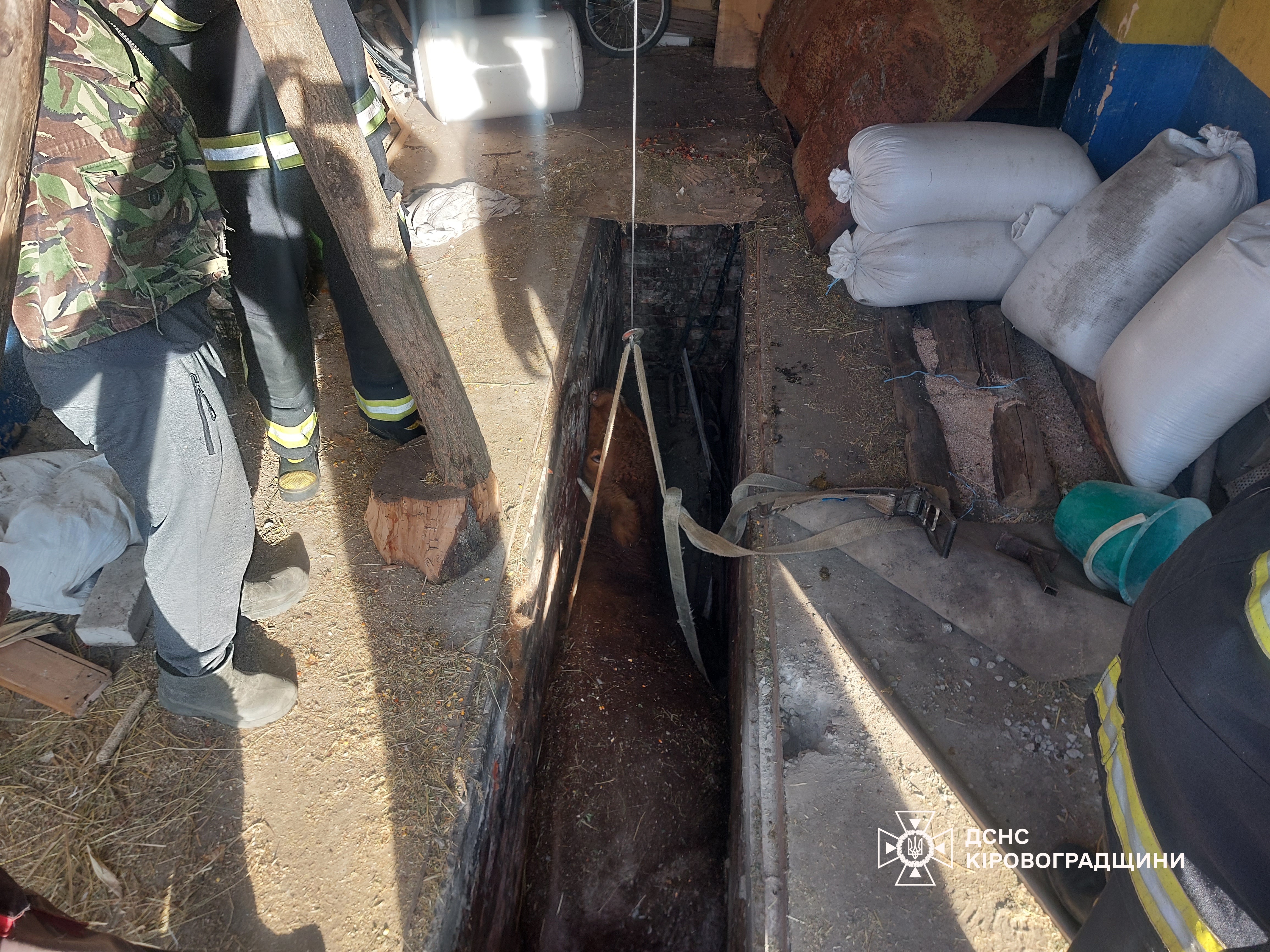 7 січня о 15:06 до Служби порятунку «101» надійшло повідомлення про те, що на вул. Шевченка с. Шамраєве Благовіщенської громади потрібна допомога рятувальників по вилученню корови, яка впала у оглядову автомобільну яму у гаражі на території приватного домоволодіння.