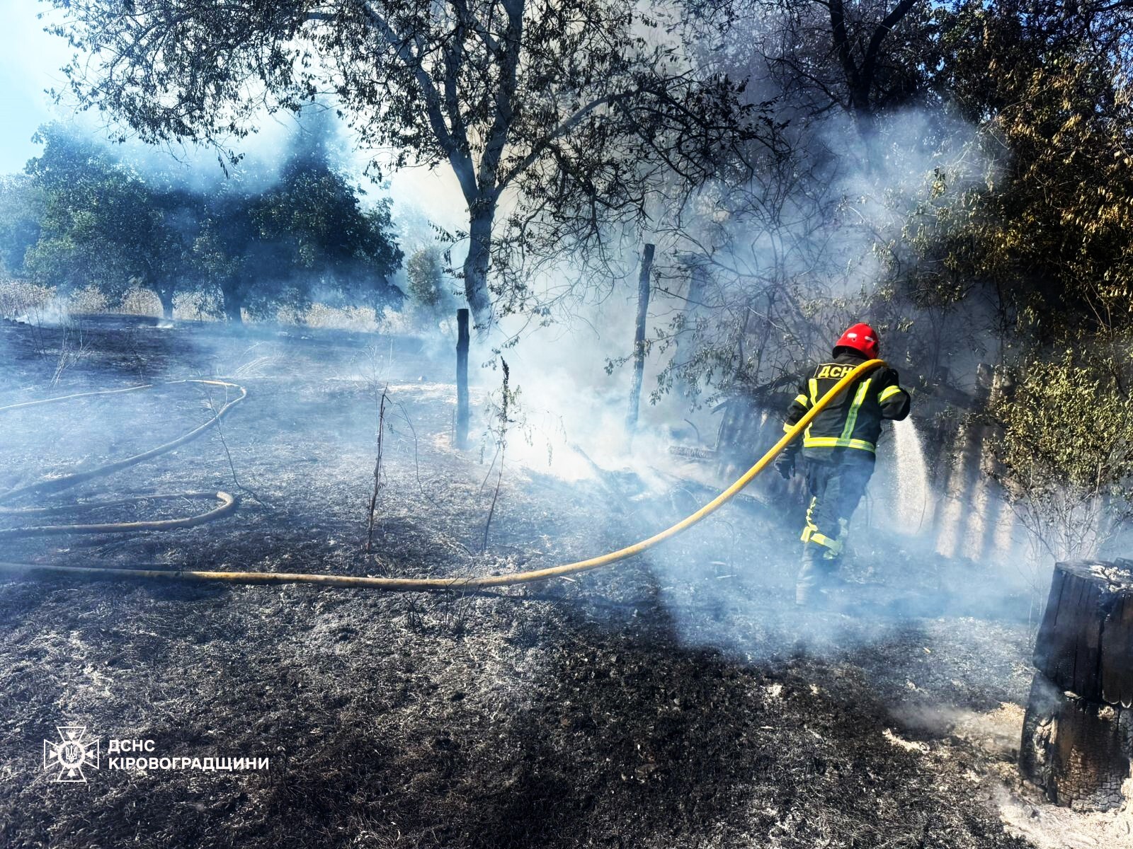 О 14:03 стало відомо про пожежу на вул. Захисників України с. Маринопіль Голованівського району. Там загорілось 200 м2 сухої трави та 15 м2 2-х господарчих споруд на території приватного домоволодіння. Бійці голованівського підрозділу о 16:09 загасили пожежу.