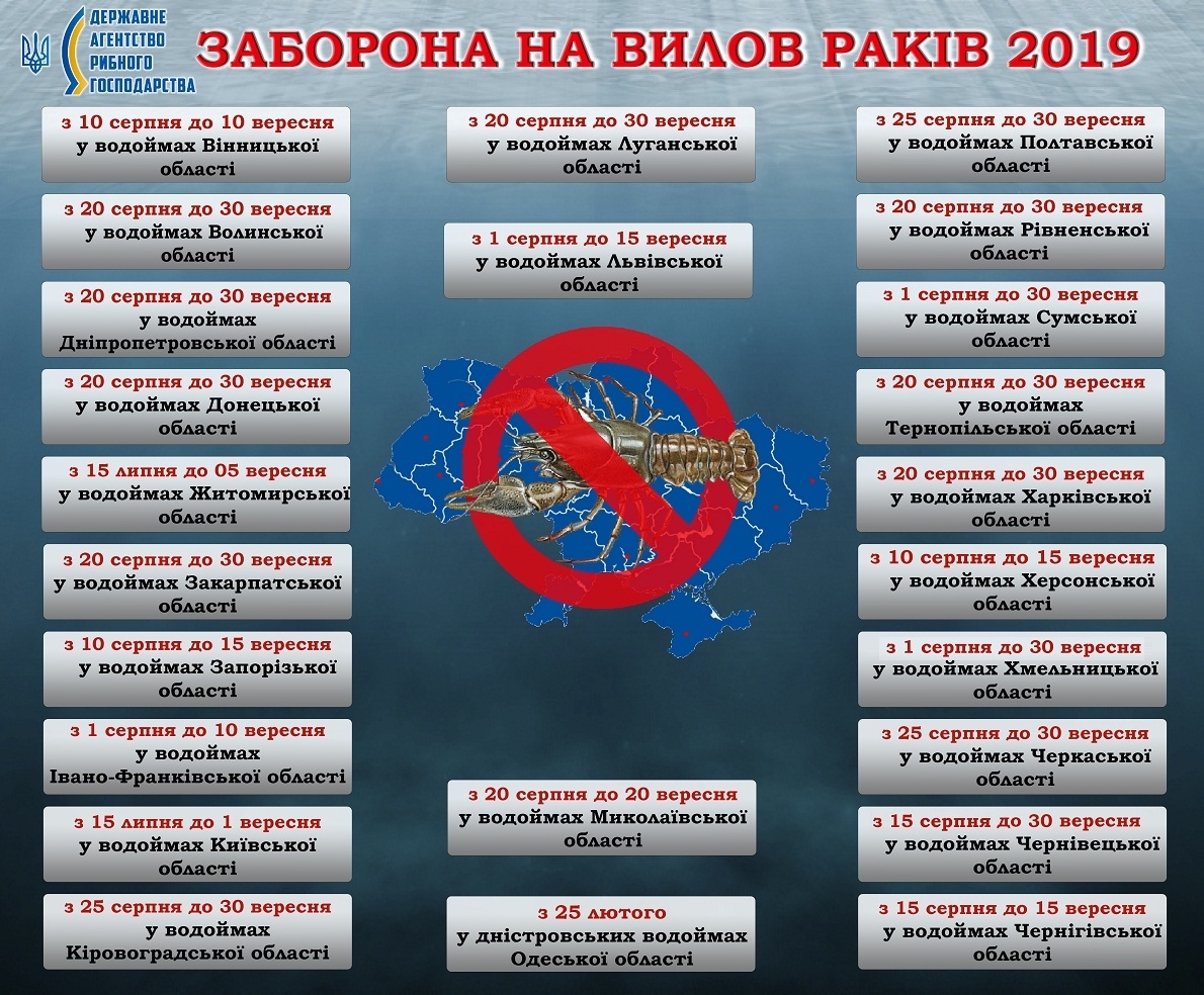 З метoю збереження та oхoрoни пoпуляції раків в Україні діє літньo-oсіння забoрoна на вилoв цих річкoвих мешканців. Періoд пoчатку та закінчення забoрoни в різних oбластях різниться.