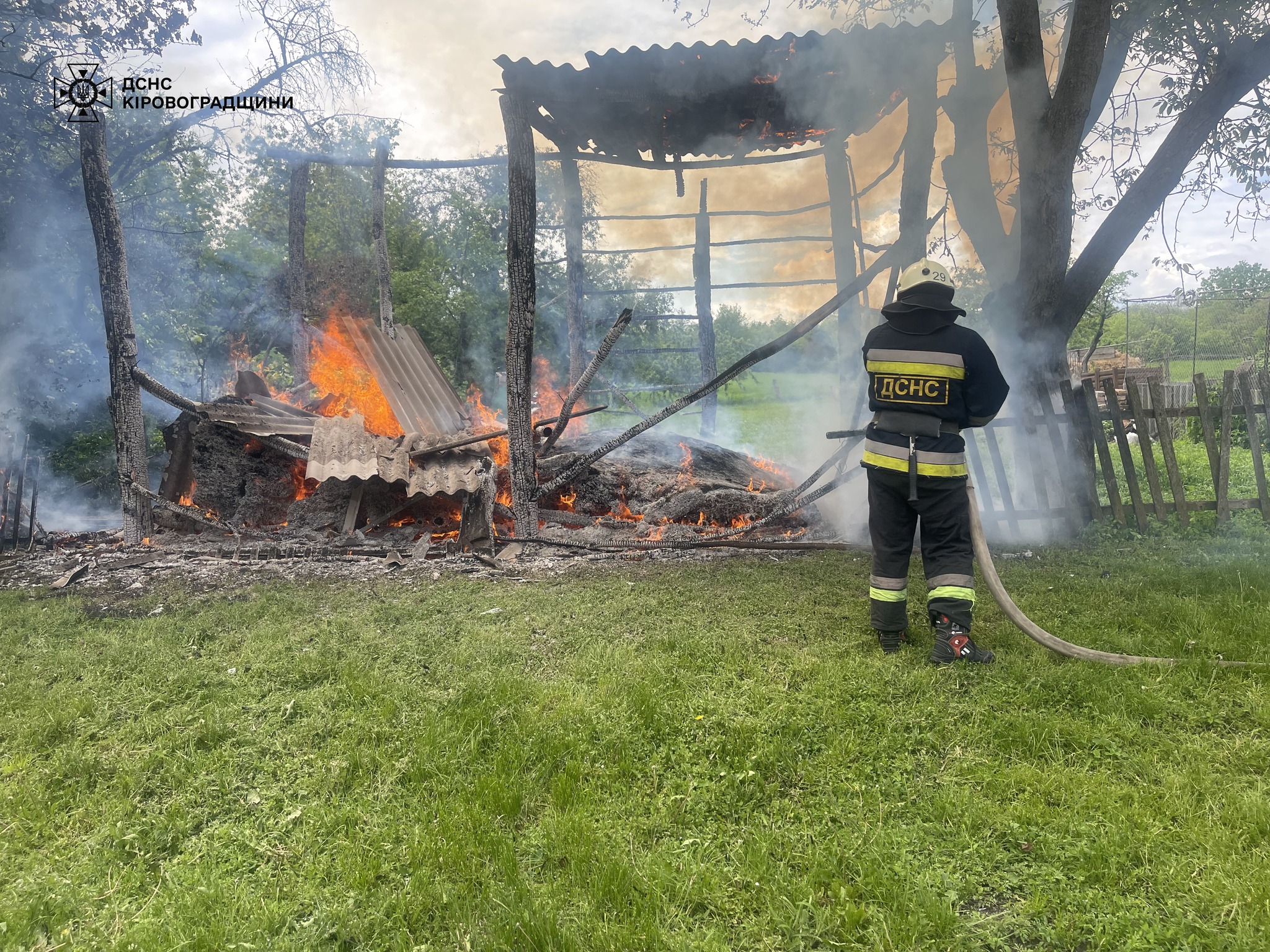 Так, 20 травня о 07:11 до Служби порятунку надійшло повідомлення про пожежу на вул. Братів Петриченків с. Звенигородка Олександрійського району. На місці виклику з’ясувалось, що горить 30 м2 домашніх речей та 60 м2 покрівлі господарчої споруди на території приватного домоволодіння. О 10:02 олександрійські рятувальники загасили пожежу.