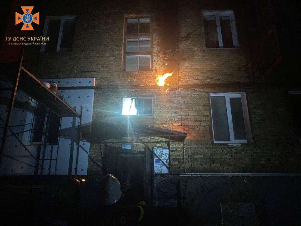 Так, 21 листопада о 22:55 до Служби порятунку надiйшло повiдомлення про пожежу на вул. Героїв України у Свiтловодську. На момент прибуття пожежно-рятувального пiдроздiлу горiв 1 м кабелю зовнiшньої електромережi на триповерховому житловому будинку. Травмованих та загиблих немає.