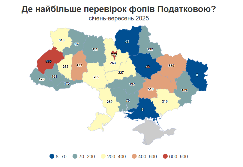 Понад шість тисяч перевiрок фопiв провела Податкова за три квартали 2025 року.
