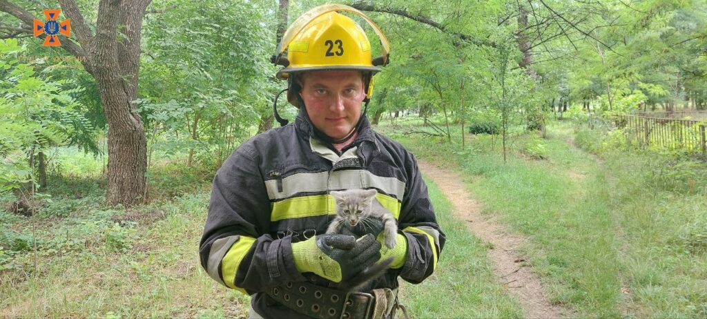 Подiя сталась на вул. Спортивнiй м. Мала Виска. Рятувальники мiсцевого пiдроздiлу визволити кошеня iз пастки.