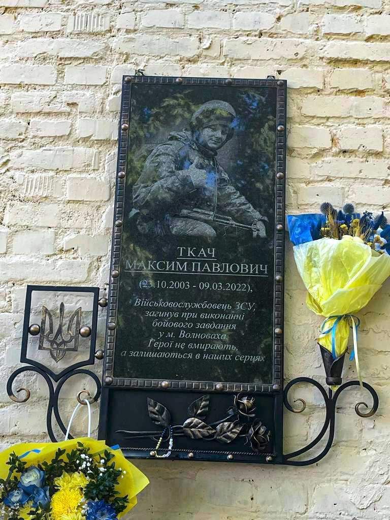 18-річний військовослужбовець Максим Ткач поклав своє життя за Україну 9 березня 2022 року під час виконання бойового завдання під Волновахою на Донеччині.