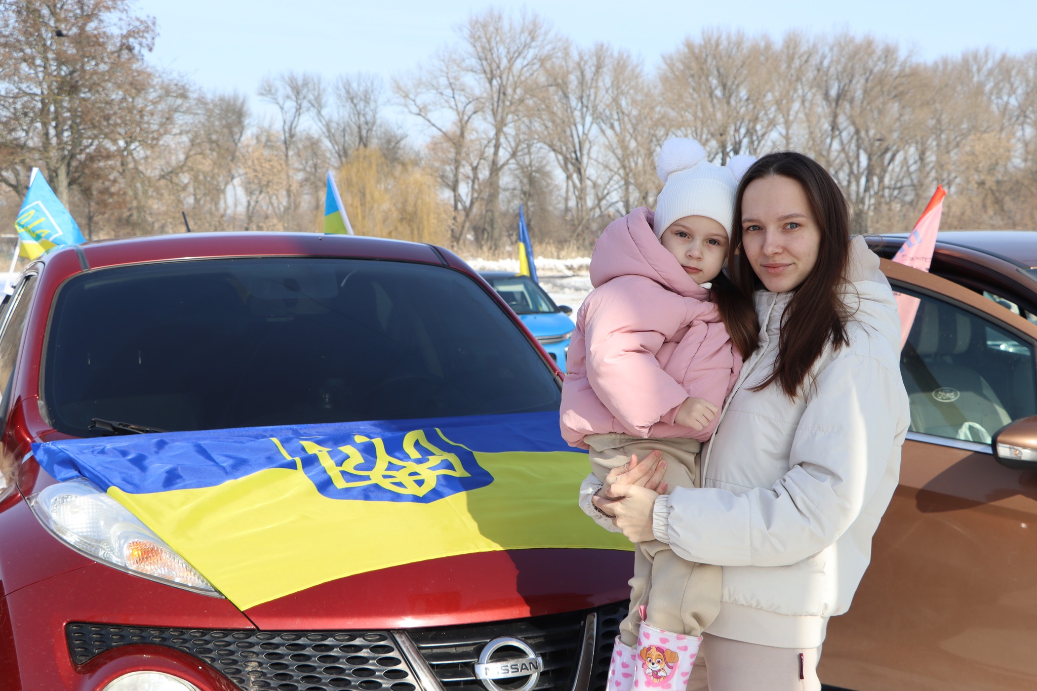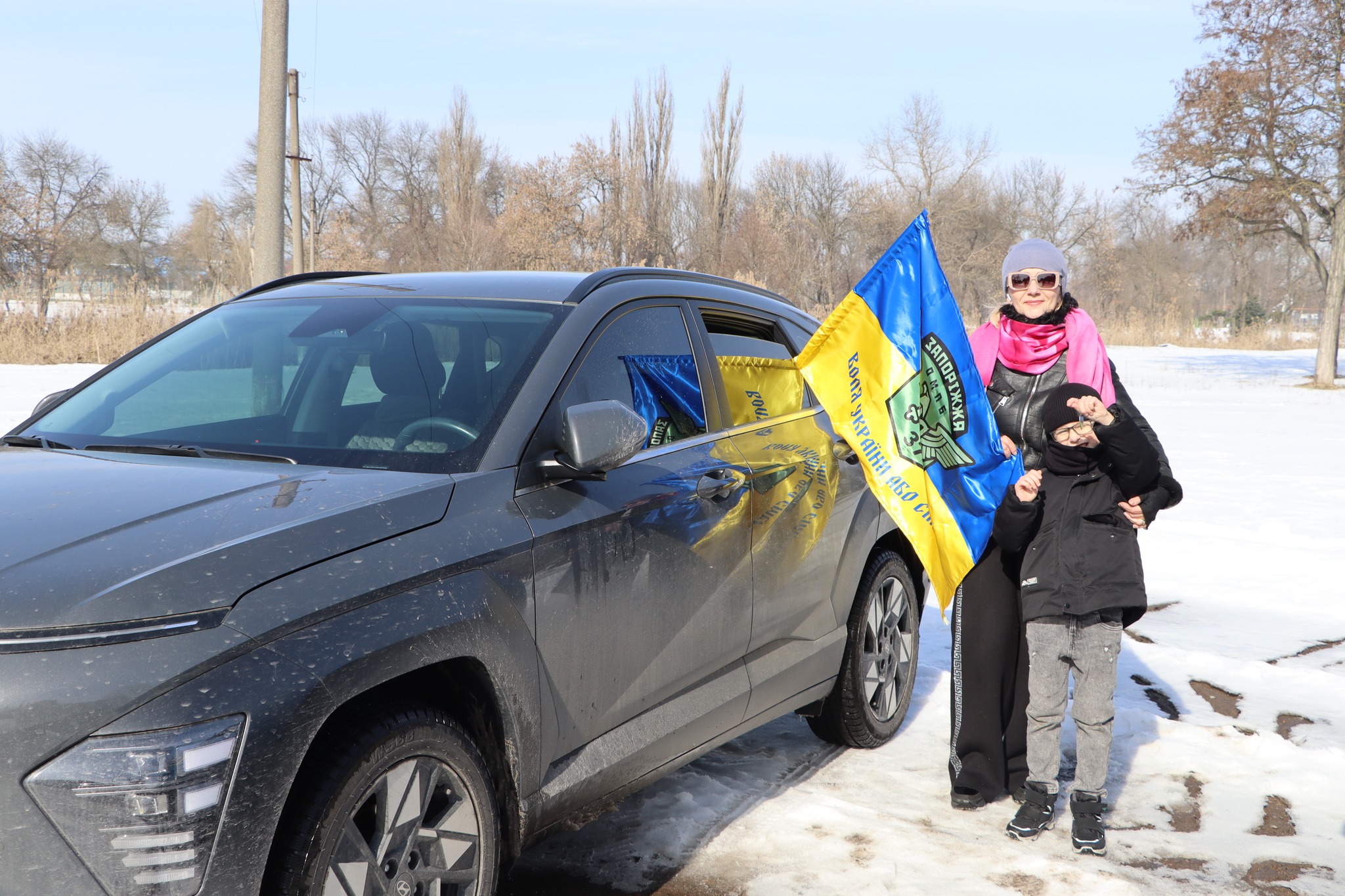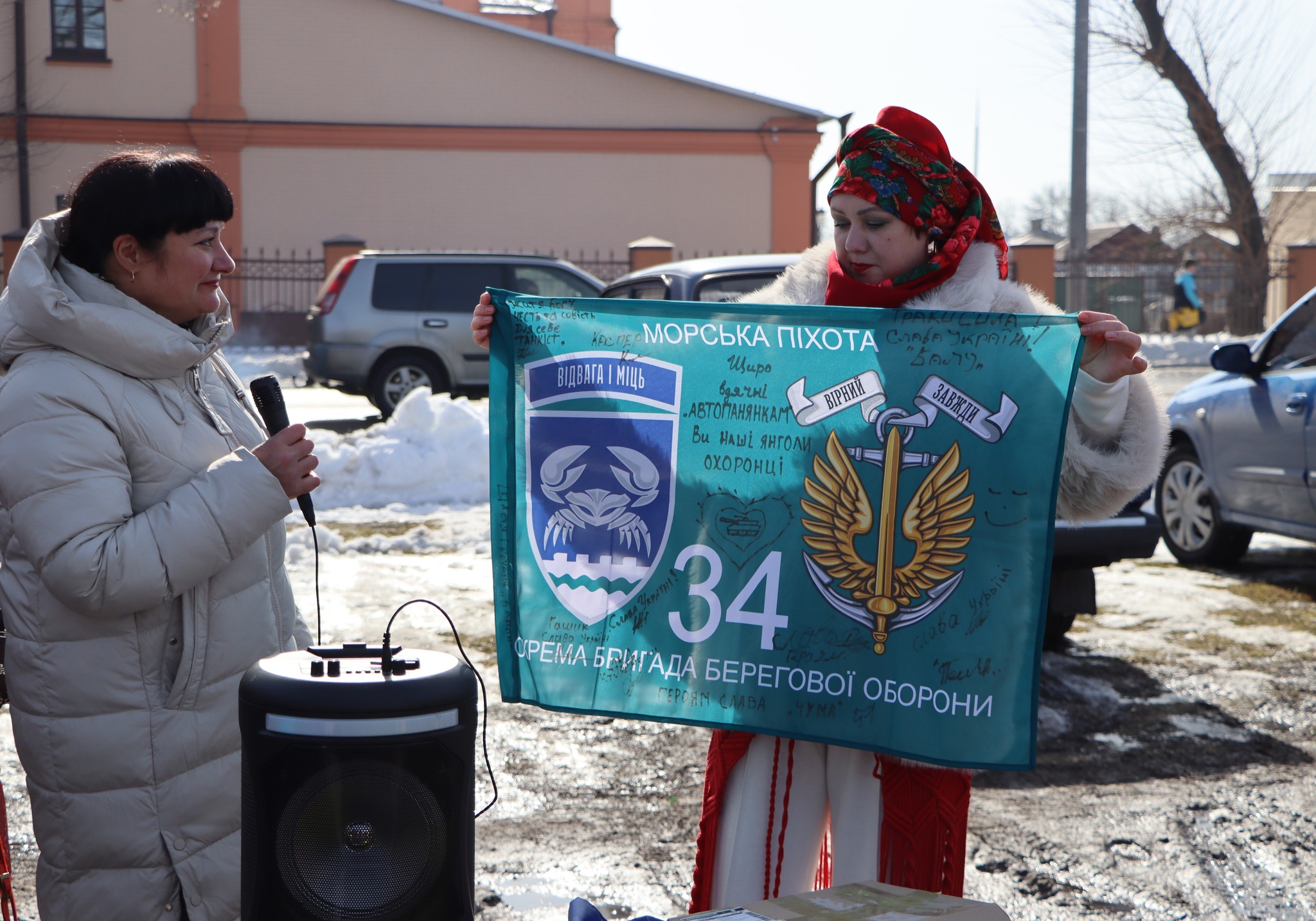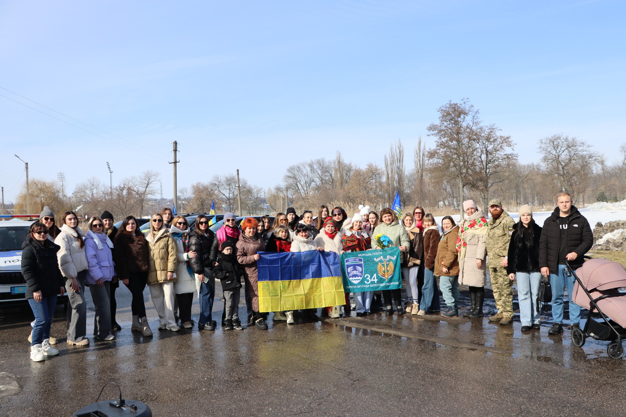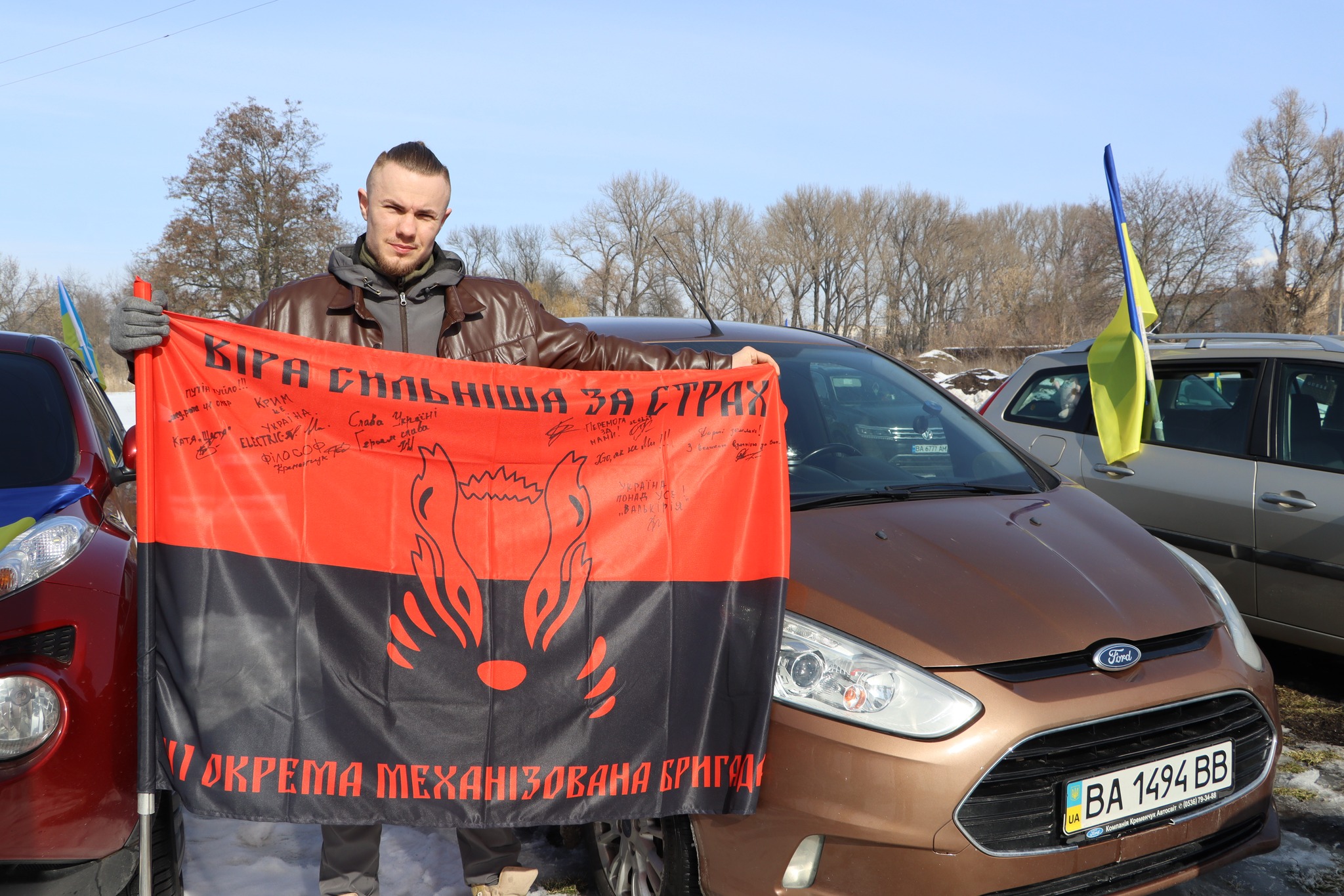 До автопробiгу долучилися близько 25 автомобiлiв. За традицiєю присутнi пiдписали Державний Прапор України для передачi вiйськовим.