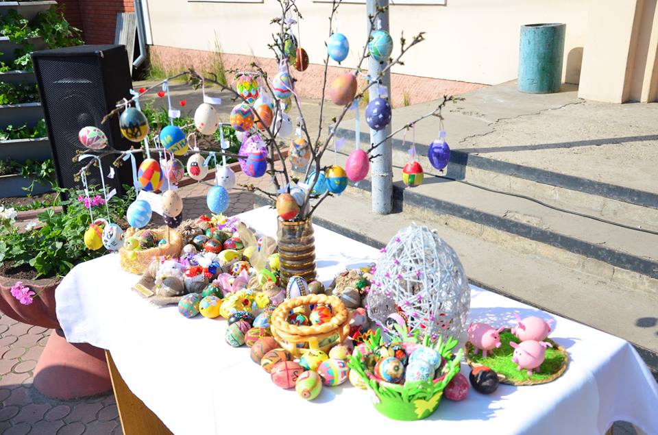 На експозиції представлено чотири великі писанки розмальовані дітьми та місцевими художниками-ентузіастами. Найближчими днями виставку поповнять ще дві великі писанки. Також для огляду представлені традиційні писанки-видутки, дерев’яні писанки та композиції виготовлені з допомогою яєць, декоровані композиції зроблені руками дітей, учасниками творчих гуртків шкіл міста та центру дитячої творчості.