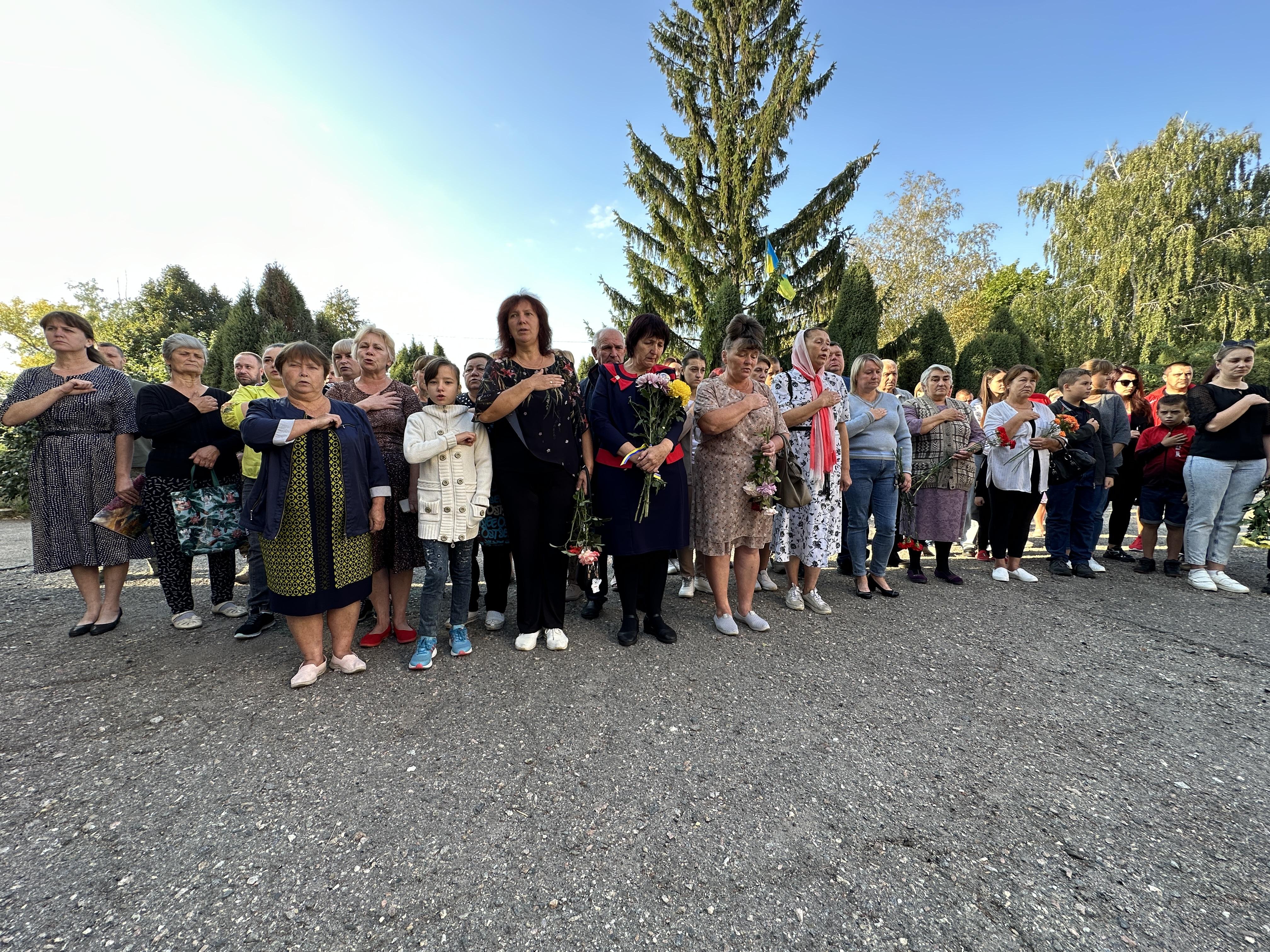 На урочистостi зiбрались друзi та рiднi вiйськовослужбовця, керiвництво громади, односельцi, представники духовенства. Право вiдкрити меморiальну дошку надали дружинi, донцi та матерi Героя.
