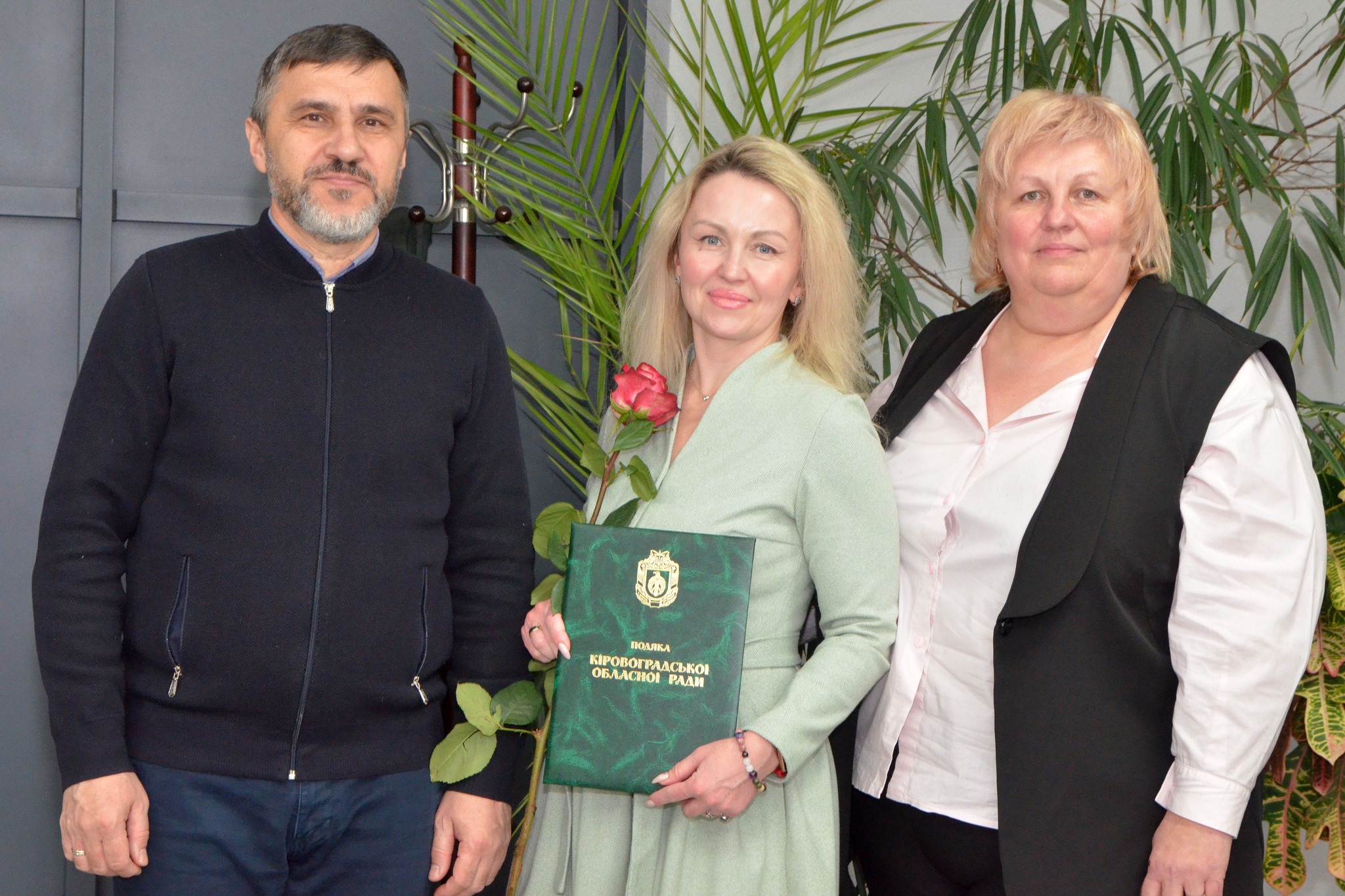 За багаторiчну сумлiнну працю в органах державного фiнансового контролю, зразкове виконання службових обов’язкiв та високий професiоналiзм, Юрiй Семенюк оголосив подяки Кiровоградської обласної ради заступницi начальника вiддiлу контролю у галузi промисловостi, iнфраструктури та ЖКГ управлiння Схiдного офiсу Держаудитслужби в Кiровоградськiй областi Оленi Овчаровiй та заступницi начальника вiддiлу контролю у галузi освiти, науки, спорту та iнформацiї зазначеного управлiння Юлiї Христич.
