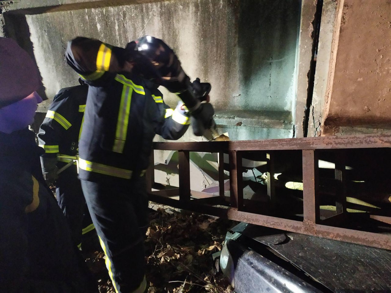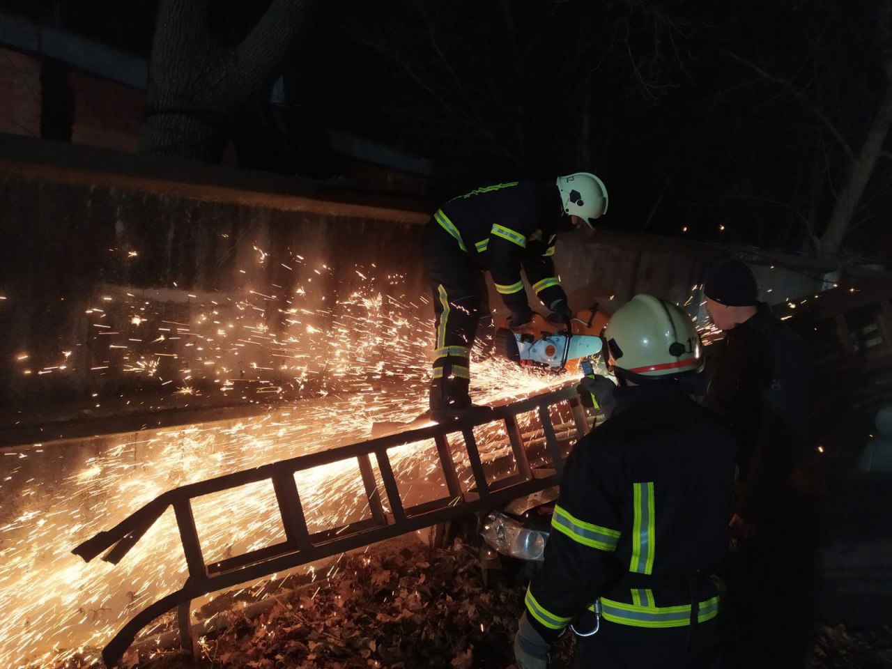Рятувальники 2-го Державного пожежно-рятувального загону м. Олександрiя за допомогою спецiнструменту провели демонтаж металевої конструкцiї.