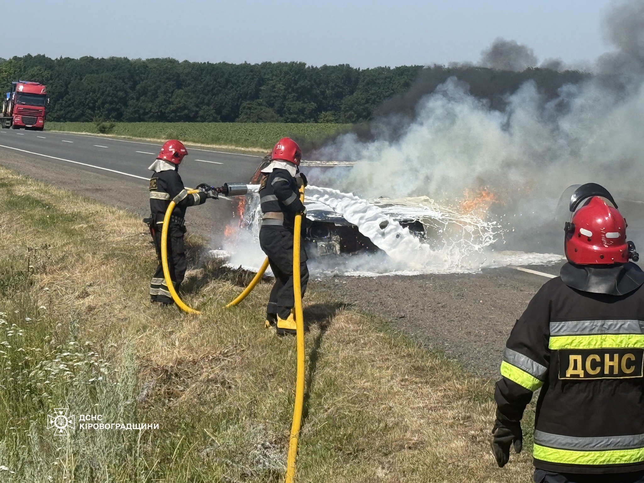 Поблизу смт Новоархангельськ загорівся легковий автомобіль просто неба.
