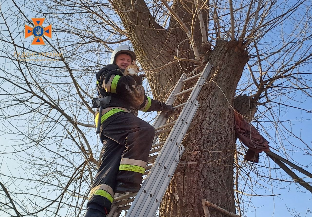 17 лютого, вранці до Служби порятунку надійшло повідомлення про те, що на вул. Степовій с. Водяне Петрівської громади кіт заліз на високе дерево та не може самотужки спуститися.