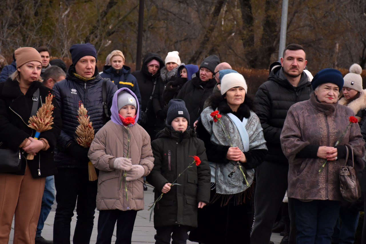 Перший заступник голови обласної ради Юрій Семенюк, заступники начальника ОВА Сергій Шеремет і Катерина Колтунова, секретар міської ради Олег Колюка, правоохоронці, військові, жителі та гості міста поклали до Пам’ятного знаку «Жертвам Голодоморів в Україні» колосся пшениці та запалили лампадки на згадку про безвинних жертв геноциду, спричиненого радянською владою.
