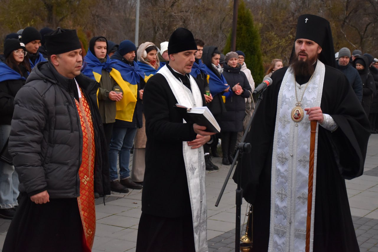 Архієпископ Кропивницький і Голованівський Марк прочитав молитву і звернувся до присутніх із напутнім словом, закликавши підтримувати захисників і захисниць України, які зараз протистоять злу, що є прямим нащадком режиму, винного в створені голодоморів в Україні.