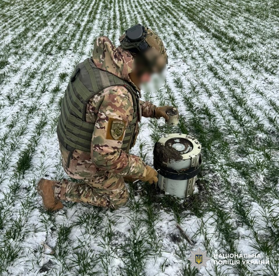 Під час проведення обстеження встановлено, що бойова частина безпілотника не здетонувала та становила реальну загрозу для життя громадян. Із дотриманням усіх заходів безпеки поліцейські-вибухотехніки транспортували небезпечний предмет на безпечну відстань та здійснили контрольований підрив.