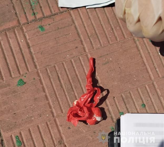 При огляді місця події, правоохоронці виявили та вилучили пристрій для перекиду наркотичних засобів через огорожу та пакунок загорнутий у клейку стрічку, з поліетиленовим пакетом із білою порошкоподібною речовиною.