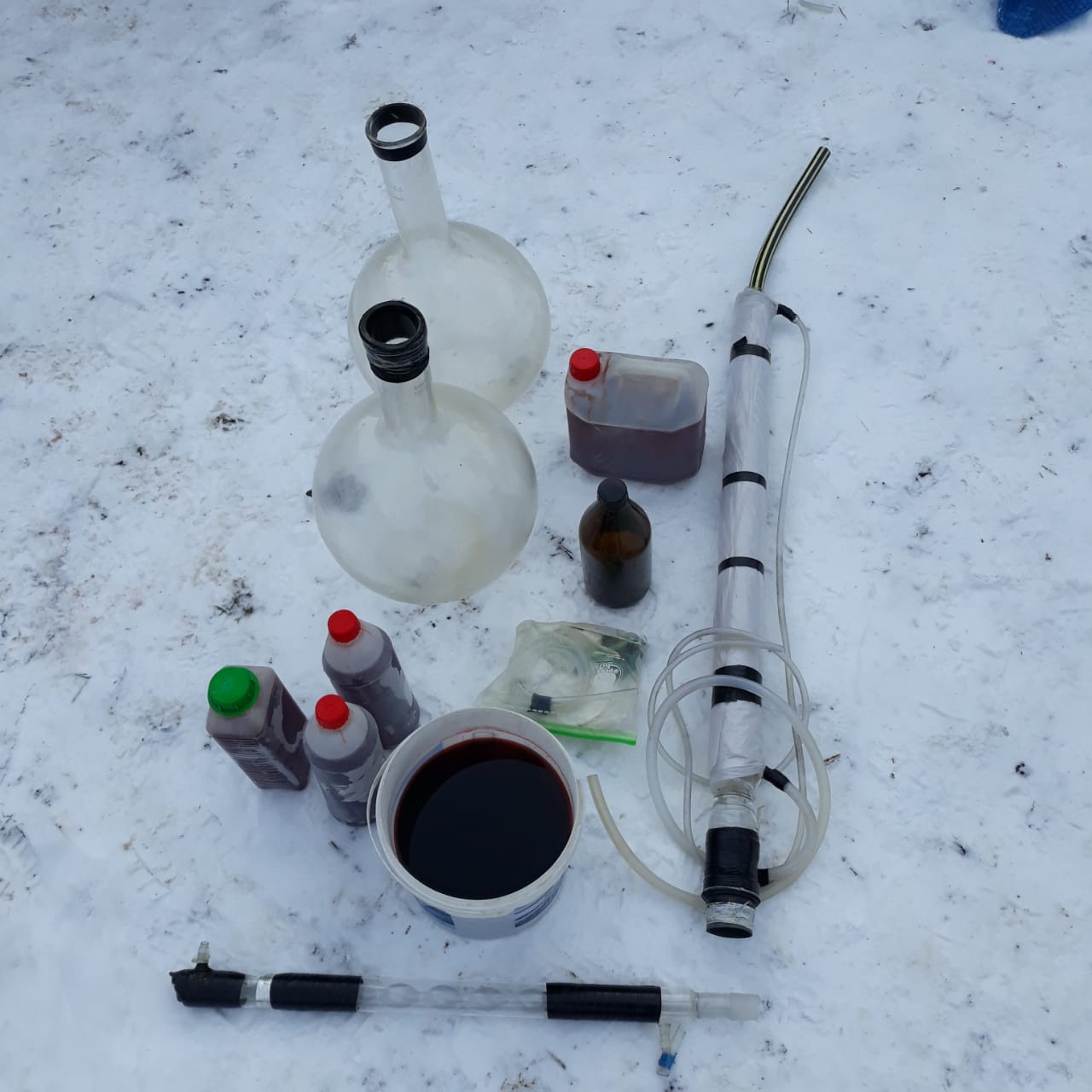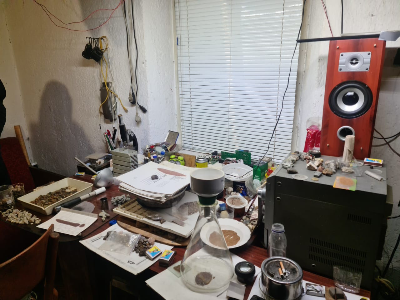 Правоохоронцi провели десять обшукiв за мiсцем виготовлення наркотикiв та адресами проживання учасникiв угруповання. За результатами проведення слiдчих дiй спiвробiтники СБУ виявили та вилучили велику кiлькiсть прекурсорiв, розфасованi психотропи, банкiвськi картки, засоби мобiльного зв’язку, а також обладнання для виготовлення i фасування готового товару.