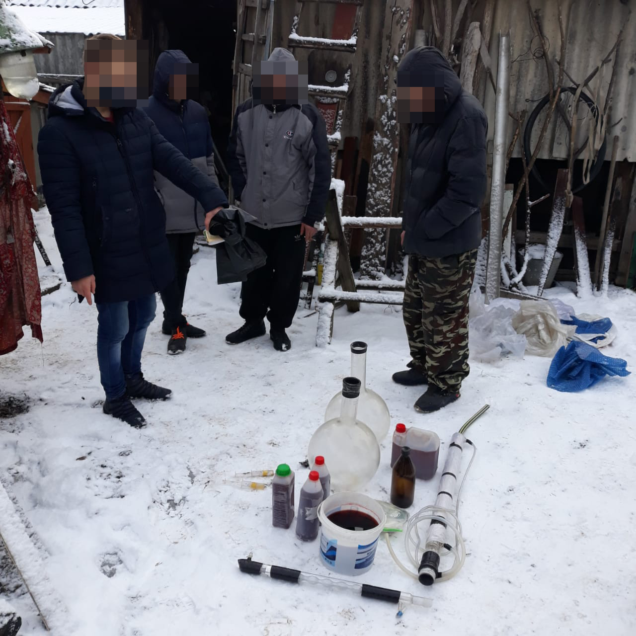 Оперативники спецслужби встановили, що п’ятеро мешканцiв Гайворона Кiровоградської областi органiзували у райцентрi нарколабораторiю по виробництву амфетамiну та метамфетамiну. Товар в домашнiх умовах за мiсцем свого проживання виготовляв один iз членiв групи, який володiв спецiальними знаннями у хiмiчнiй сферi.