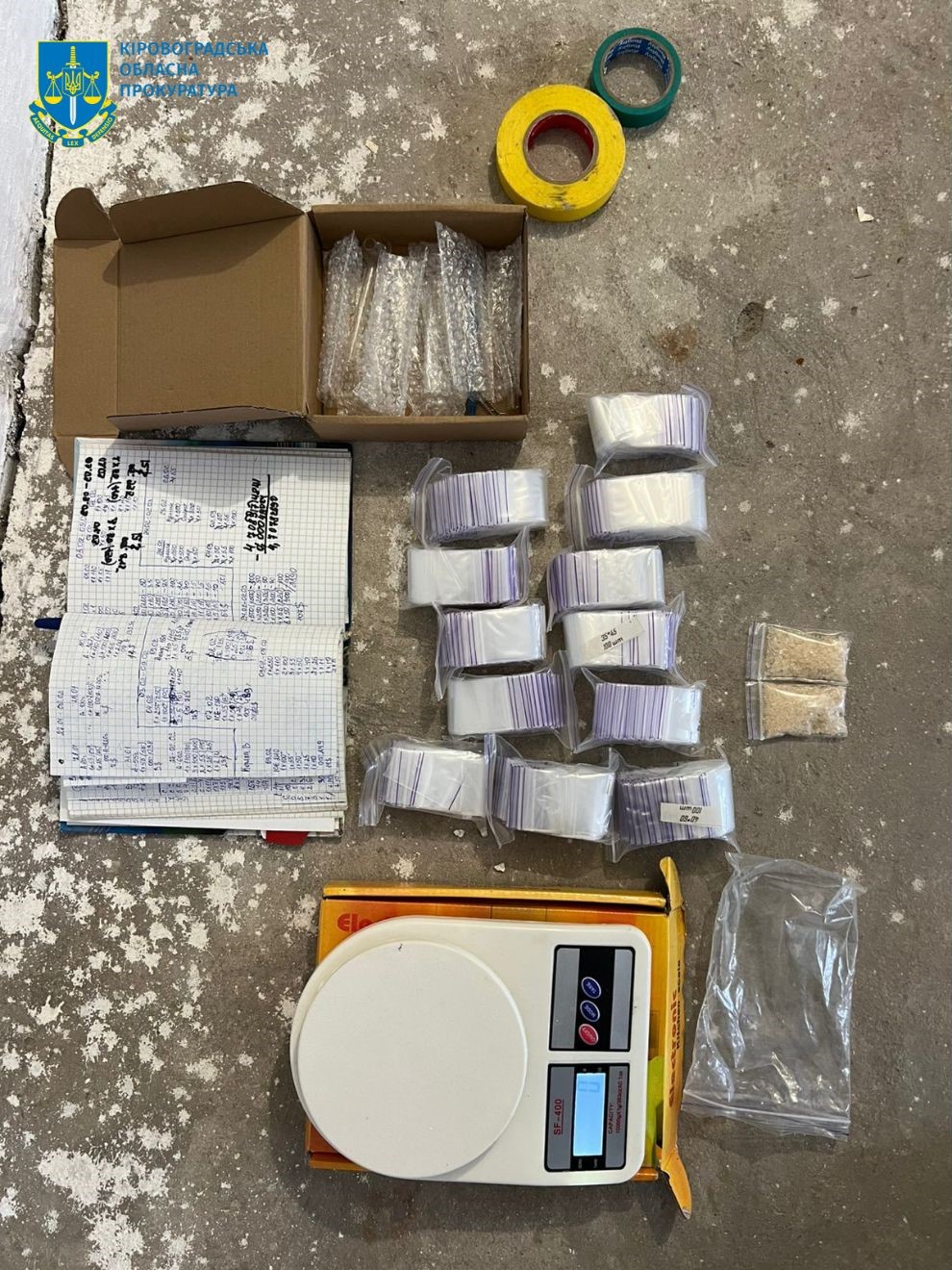 Внаслідок скоординованих прокуратурою дій проведено 15 санкціонованих обшуків на території Кіровоградської, Полтавської та Черкаської областей, в ході яких виявлено та вилучено понад 3 кг психотропної речовини Aльфа-PVP у жидко-кристалічному та сухому вигляді, частина з якої розфасована в зіп-пакети для реалізації; 143 л прекурсорів; 360 гр мефедрону; обладнання та приладдя, пристосоване для виготовлення та пакування наркотиків; автоматична зброя; два автомобілі; мобільні телефони; банківські карти тощо.