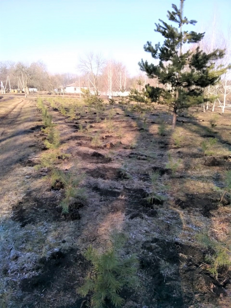 В центральнiй частинi селища Новоселiвка, поблизу стадiону висаджували дерева сосни.