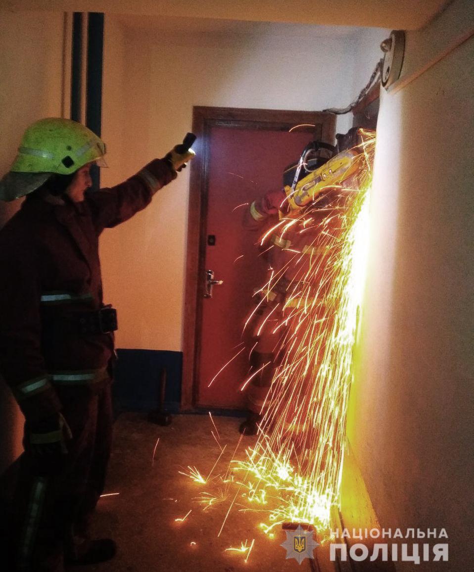 Прибувши на мiсце пригоди та опитавши свiдкiв, полiцейський негайно викликав до помешкання потерпiлої рятувальникiв. За допомогою спецiальних засобiв їм вдалося вiдчинити квартиру, визволити хвору та передати її лiкарям.