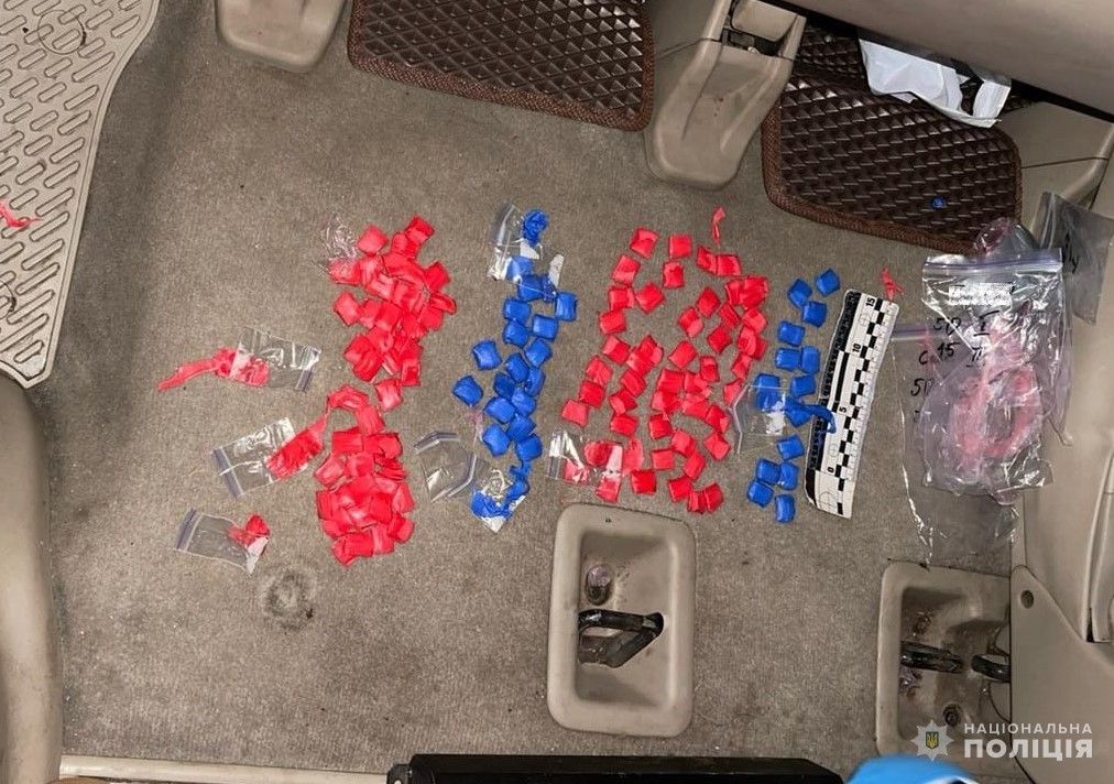 Під час проведення обшуку автомобіля зловмисника у багажному відділені поліцейські виявили та вилучили два поліетиленових пакети, обмотані липкою стрічкою. У них знаходилися 135 «закладок» із психотропною речовиною.
