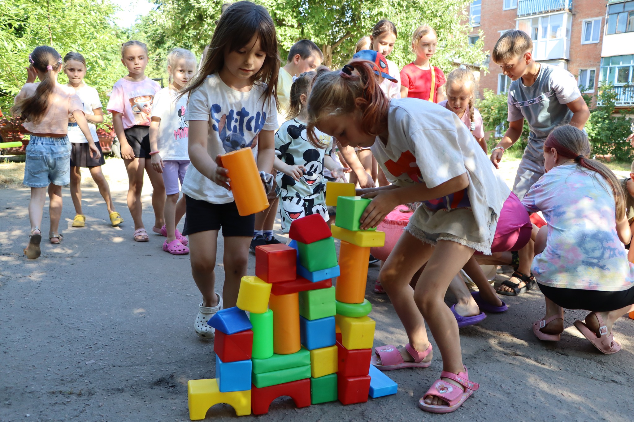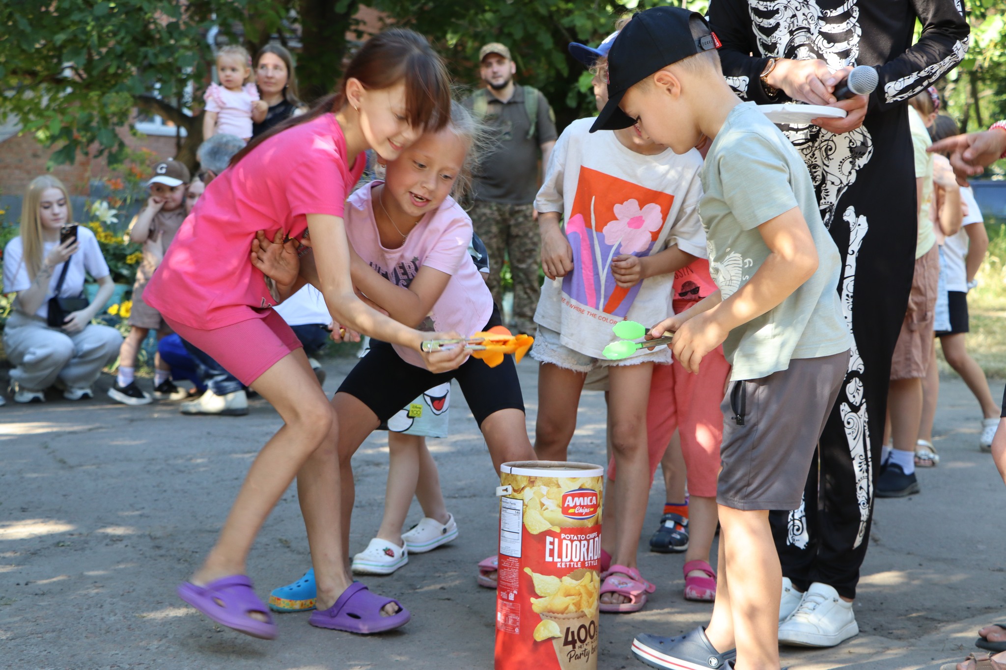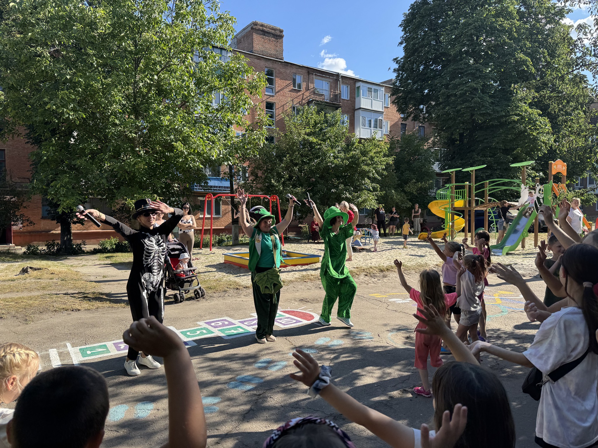 Разом iз анiматорами дiтки змагалися в естафетах, гралися, танцювали та бавилися з мильними бульбашками.